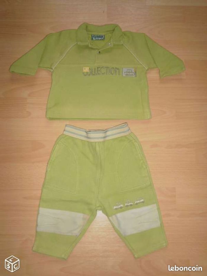 Bonjour, Je vends un ensemble pantalon + haut vert à motifs en 6 mois de marque DPAM. En coton assez épais. Convient plus pour l'automne ou l'hiver. En très bon état. Prix demandé : 3€