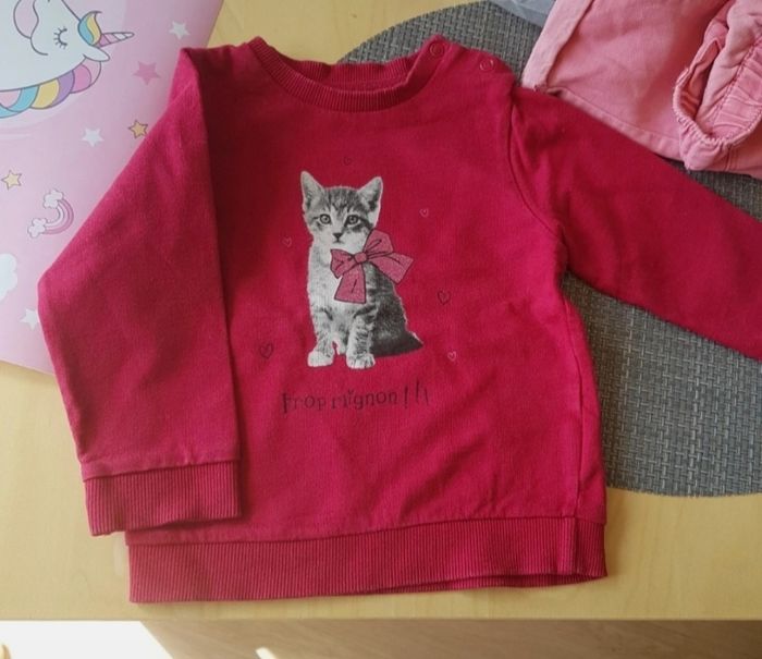 Sweat en très bon état avec motif chat 18 mois