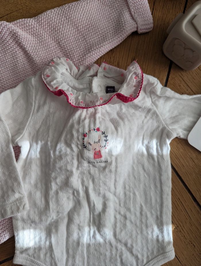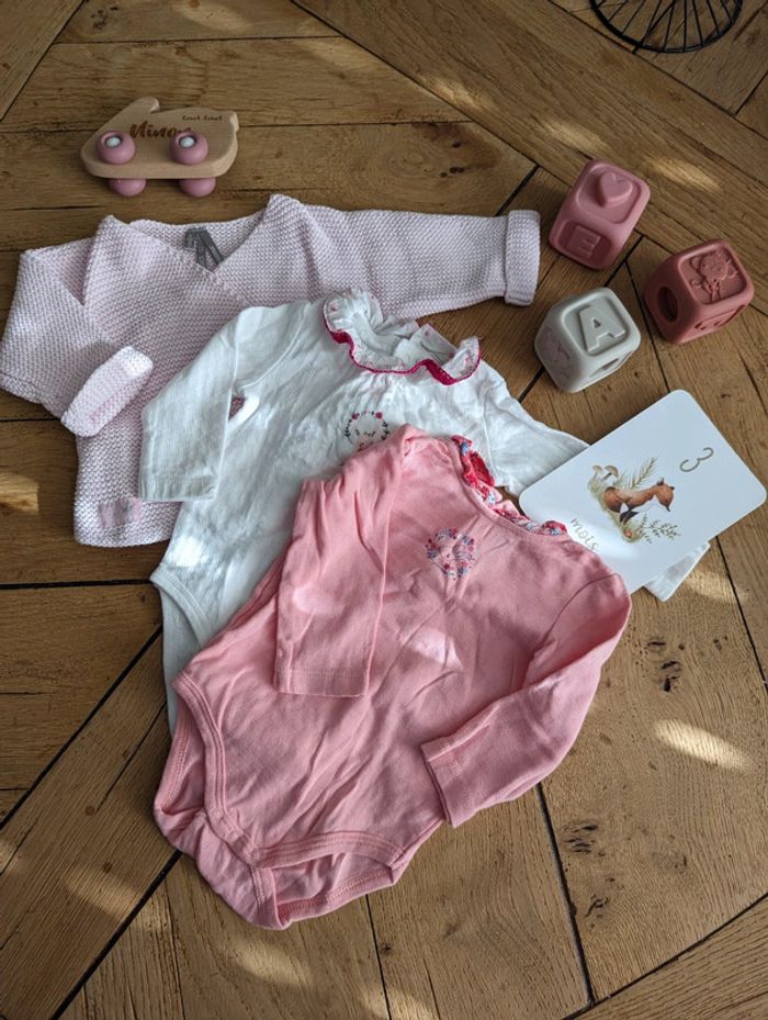 Ensemble de 2 magnifiques bodys Sergent major et d'un gilet en maille de chez Orchestra. L'ensemble est en TBE.