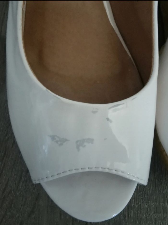 Bonjour, Je vends une paires de compensé, légèrement abîmé sur le devant ( voir photo)