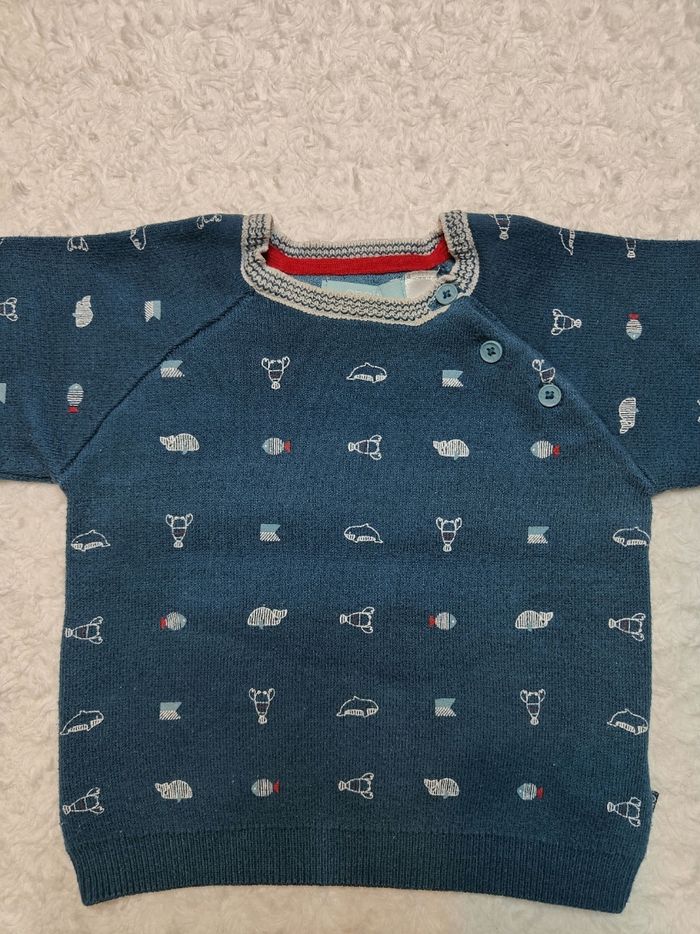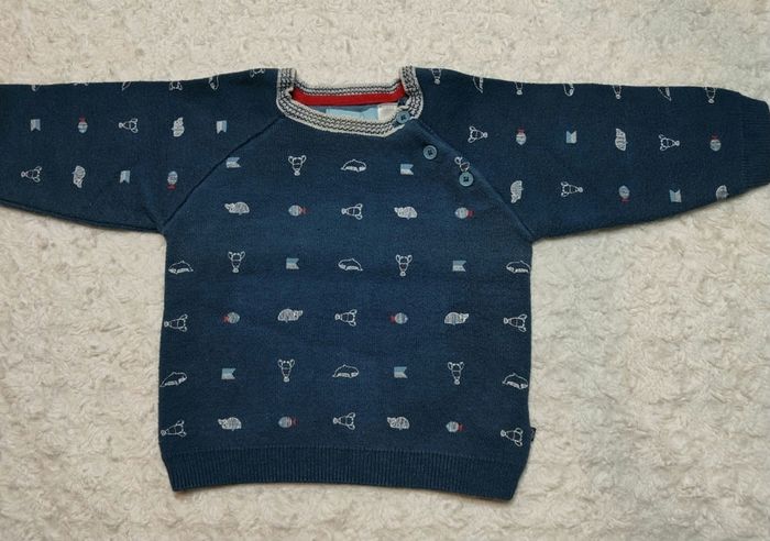 Pull en bon état, quelques peluches à retirer. Taille 6 mois.de chez obaibi.