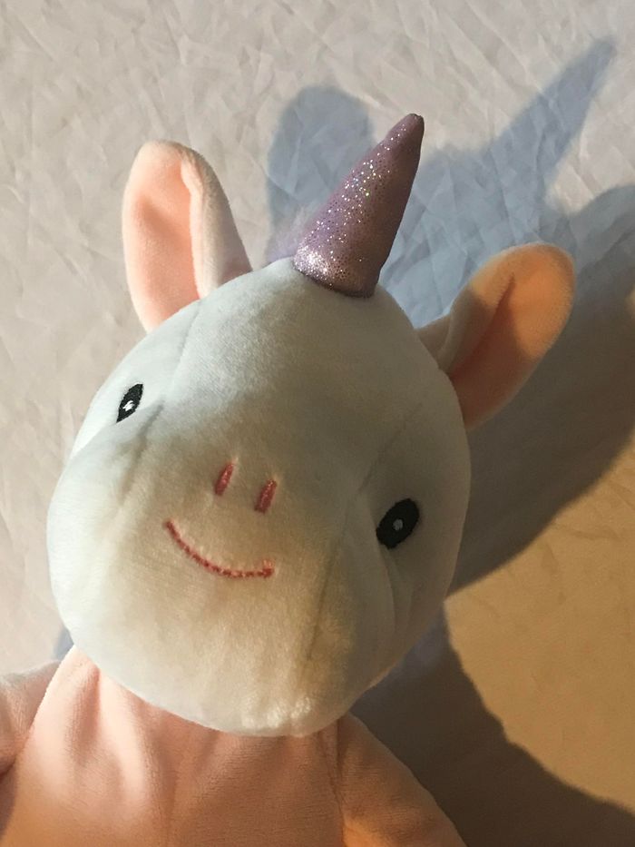Petite Licorne Assise Vêtement Rose Corne Violette Pailletée Animal Peluche Petits Enfants Bébés - photo numéro 7