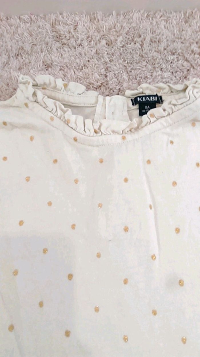 Tee-shirt manches longues fille écru à points dorée petites tâches devant voir photo 3. 8 ans #amelinafille8ans