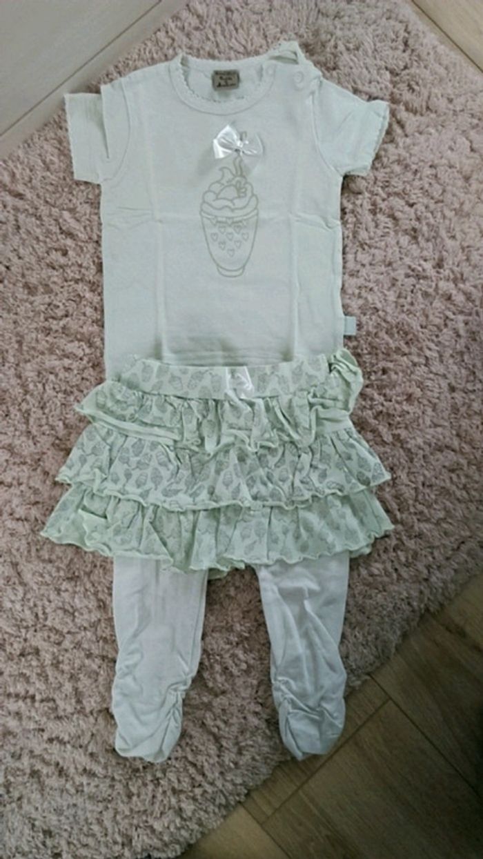 Ensemble tee-shirt avec jupe et leggings intégré à la jupe vert très pâle 18 mois jamais porté. #amelinafille18mois