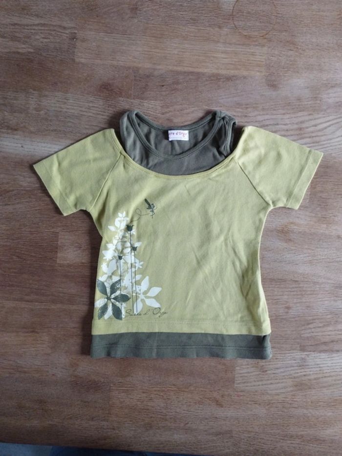 Tee-shirt vert et kaki Sucre d'orge en très bon état. Taille 5 ans, 108cm. #valerie67115_fille_5ans