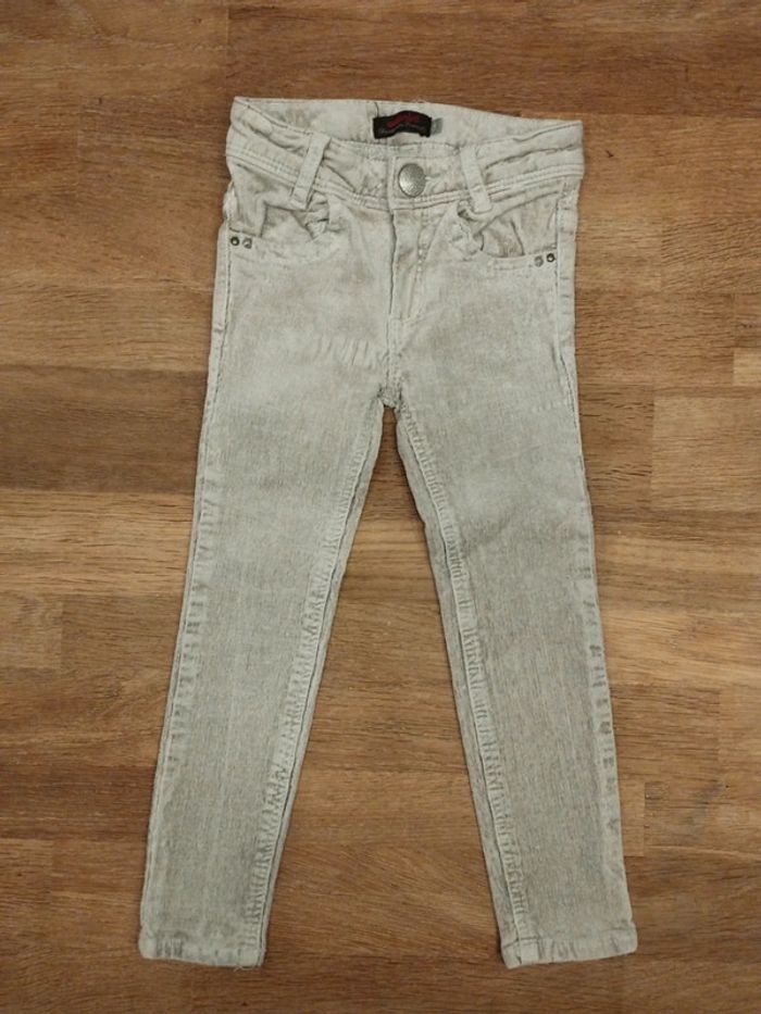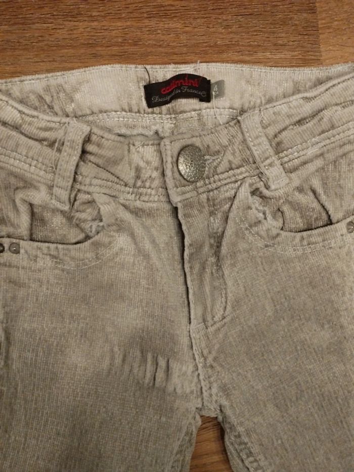 Pantalon slim en velours gris en très bon état. Taille 4 ans, 104cm. Léger relâchement au niveau de l'entrejambe non visible porté (voir photo) #valerie67115_fille_4ans