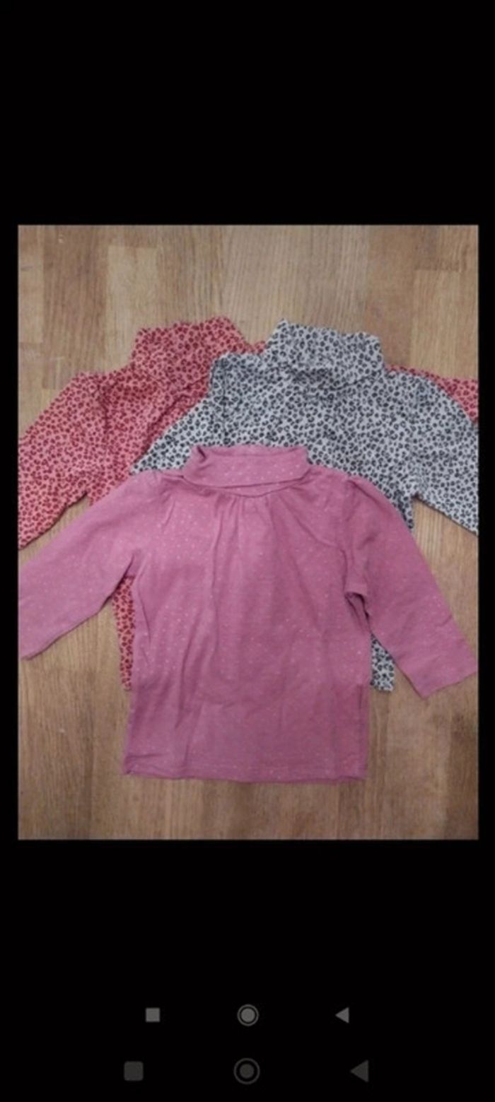 Lot de 3 sous-pulls cols roulé Kidkanai en très bon état. Pratique avec les 3 boutons pression dans le dos. Un rose à pois dorés,un gris et un rouge. Taille 18 mois. #valerie67115_fille_18mois