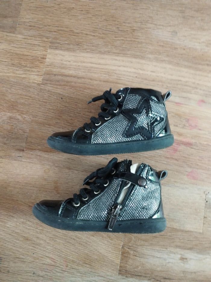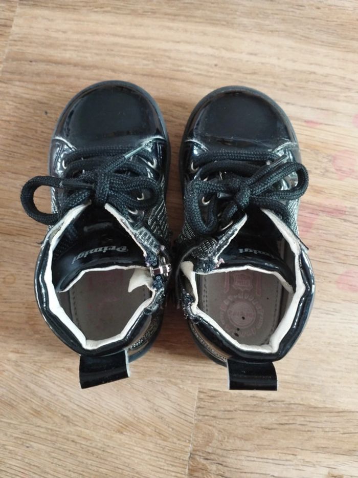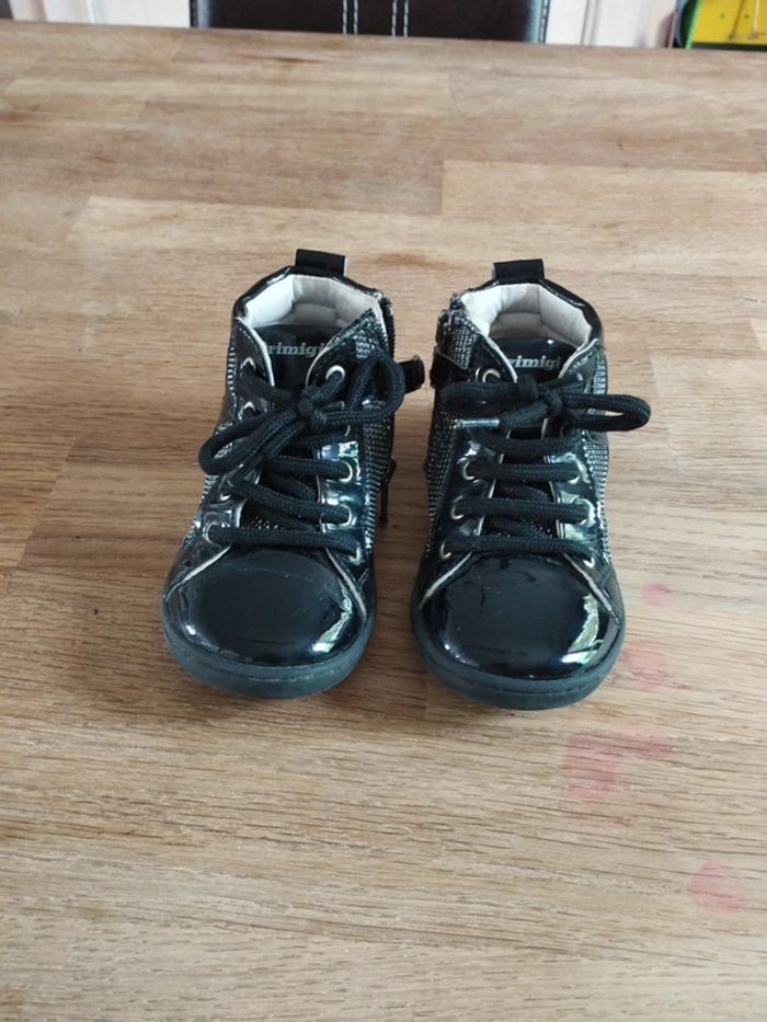 Chaussures noires Primigi, bout vernis, filet argenté, accroc sur un côté du filet(voir photo). En bon état. Taille 23. #valerie67115_chaussures_enfants