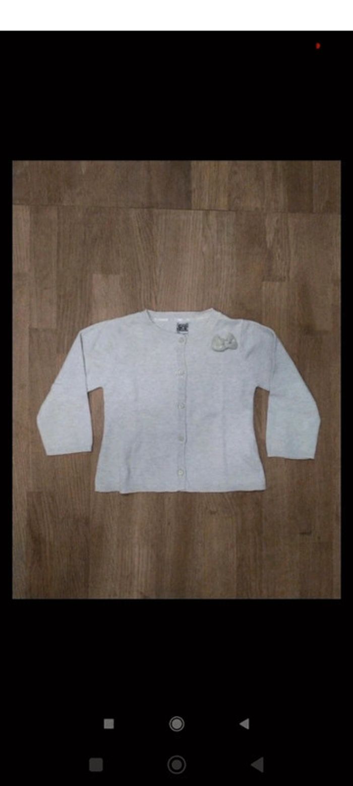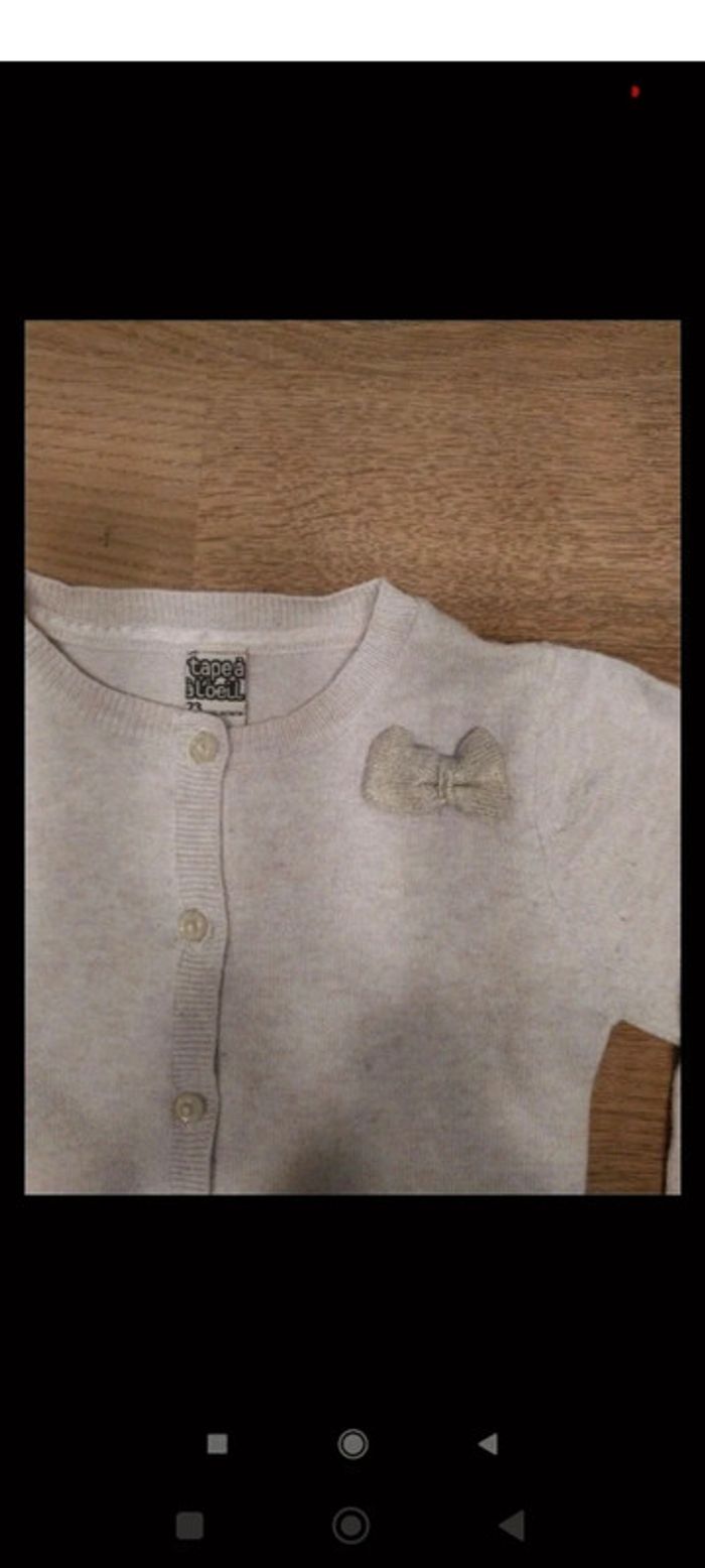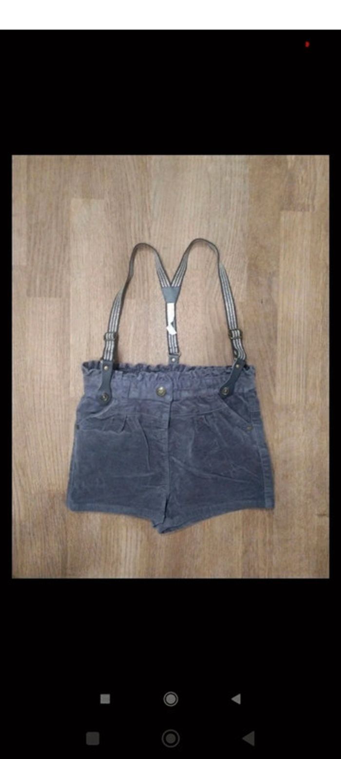 Ensemble Tape à l'oeil avec un short gris, un tee-shirt manches longues blanc et doré et un gilet beige clair avec noeud doré. Les bretelles peuvent s'enlever. En excellent état. Taille 23 mois, 86cm. #valerie67115_fille_24mois