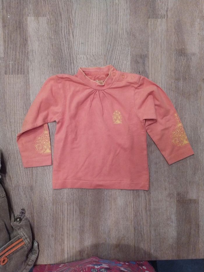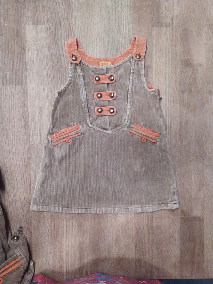Ensemble en velours orchestra avec une robe et une veste doublée beige et un tee-shirt manches longues orange, en très bon état. Taille 18 mois, 81cm. #valerie67115_fille_18mois