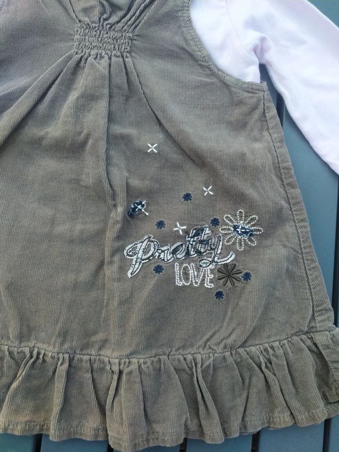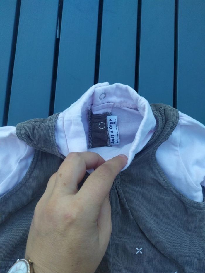 Robe Sucre d'Orge brune, avec col roulé rose clair attaché, en une pièce. En très bon état.
