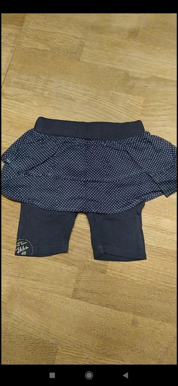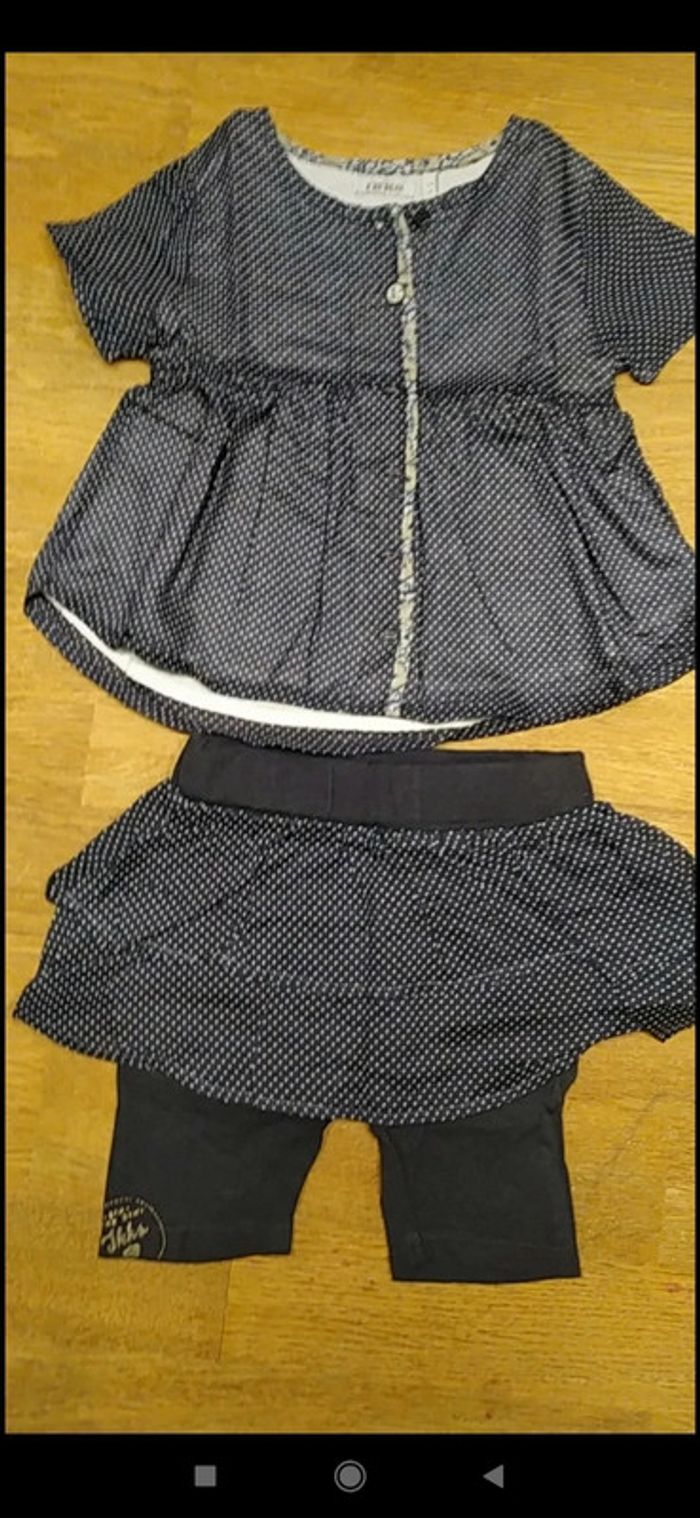 Ensemble IKKS avec une blouse manches courtes légère et un legging court avec jupe intégrée, en excellent état. Bleu Marine. Taille 12 mois, 74cm. #valerie67115_fille_12mois
