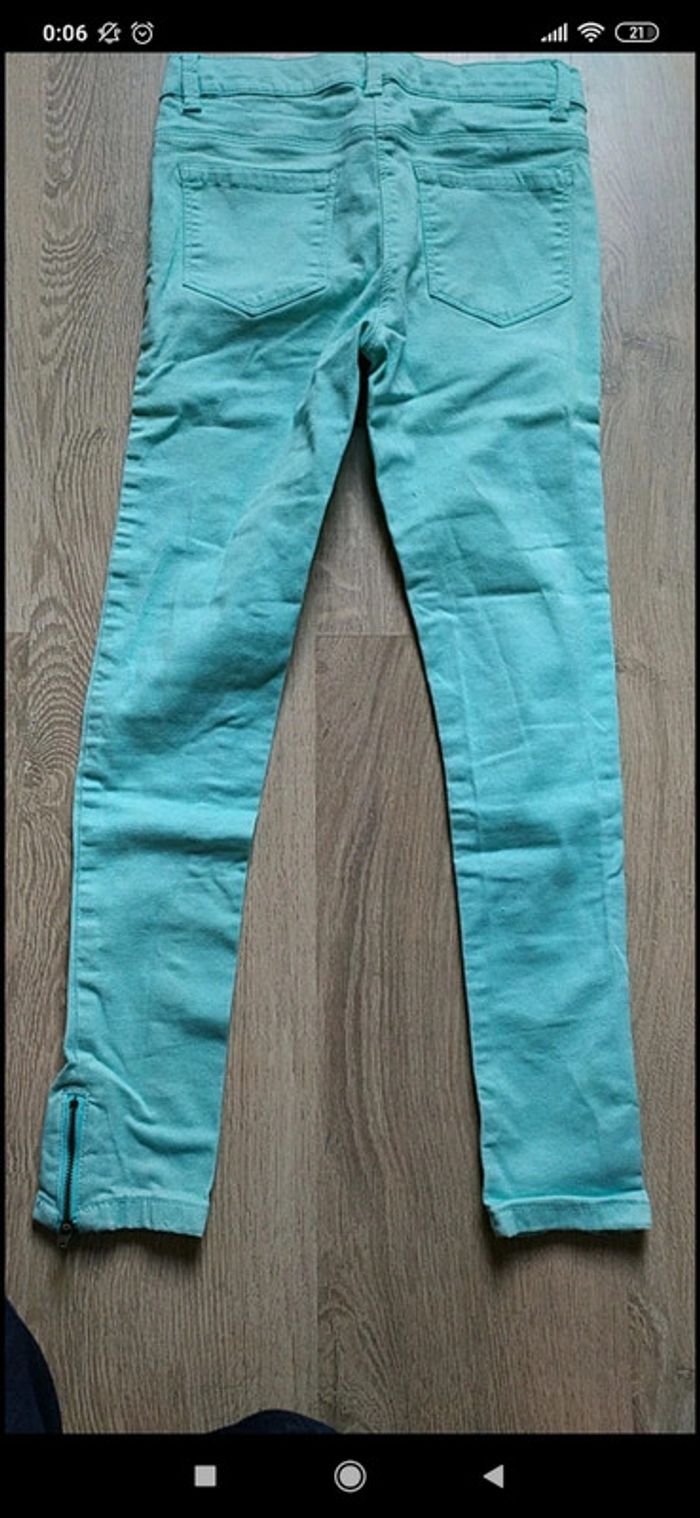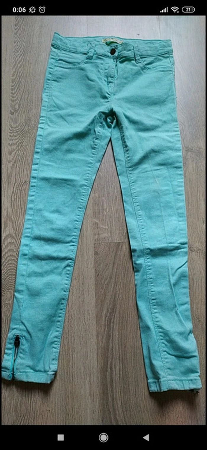 Jeans slim vert turquoise, clair Gémo en très bon état. Tirettes en bas des jambes. Taille12 ans. #valerie67115_fille_12ans