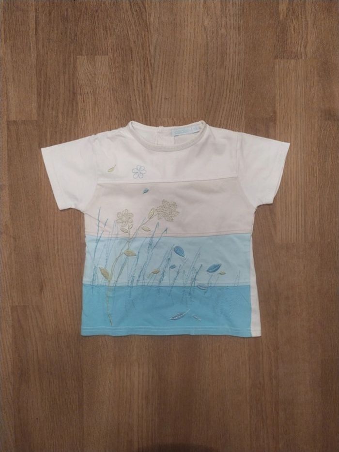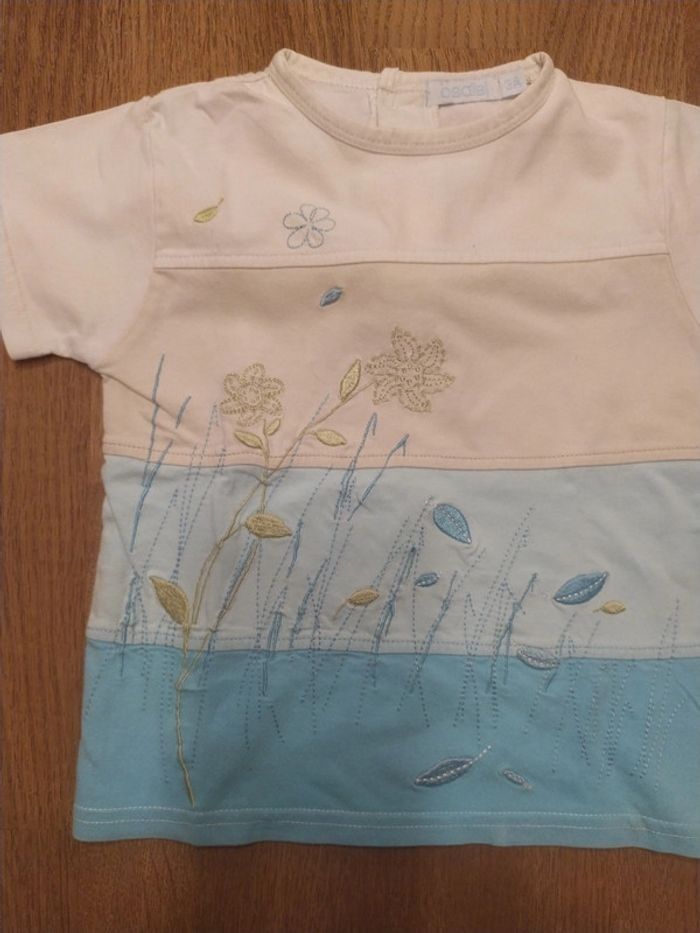 Tee-shirt blanc et dégradé de bleu Obaibi en très bon état. Taille 3 ans. #valerie67115_fille_36mois
