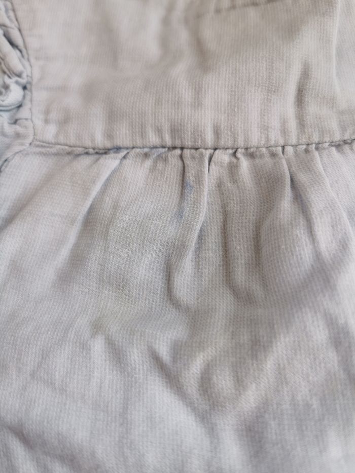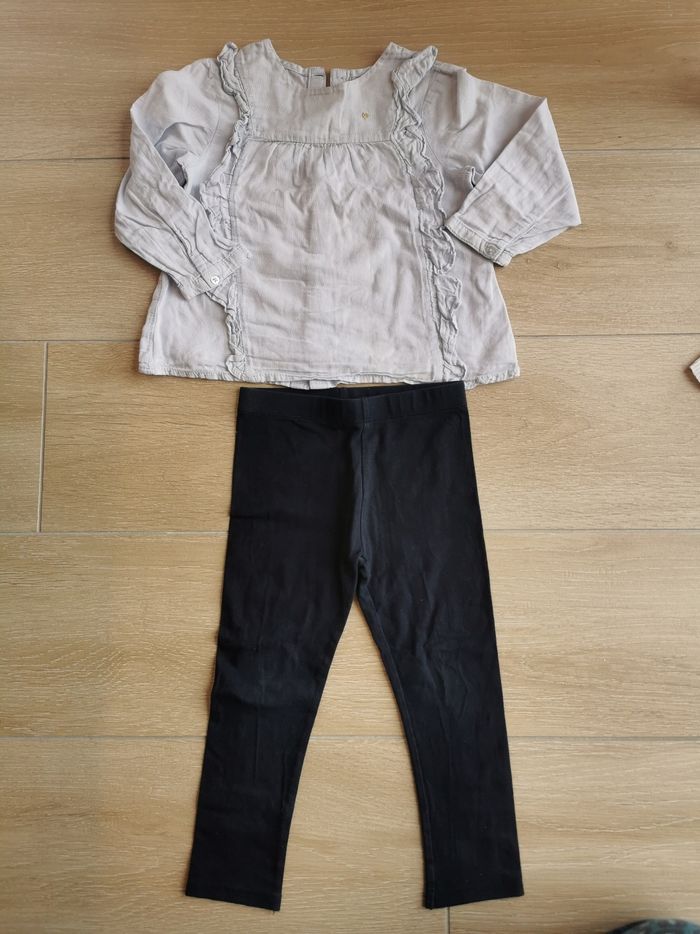 Ensemble kiabi Chemisier bleu clair (avec petite tache de feutre, qui partira sûrement avec un produit spécial) + legging bleu marine 36 mois