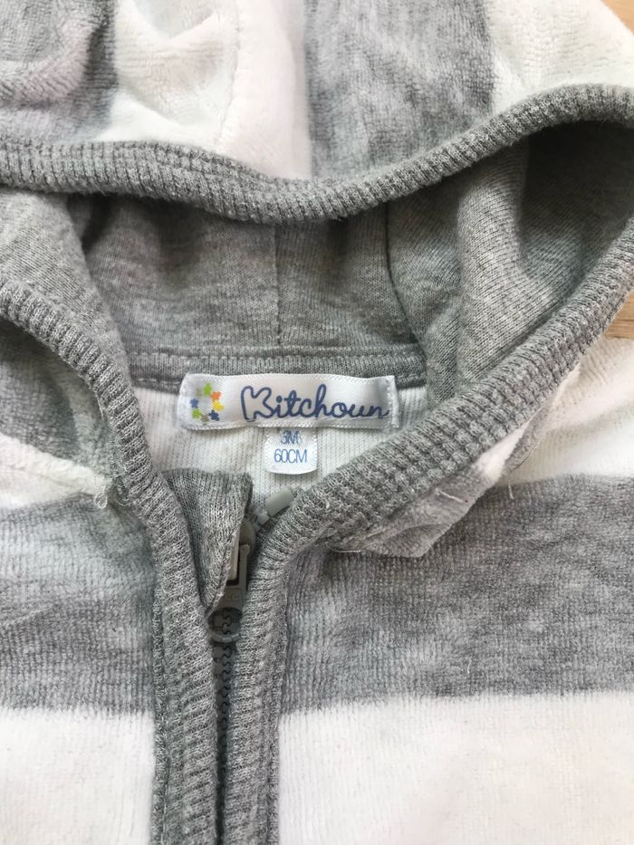 Veste zippée doudou 3m gris et blanc Kitchoun