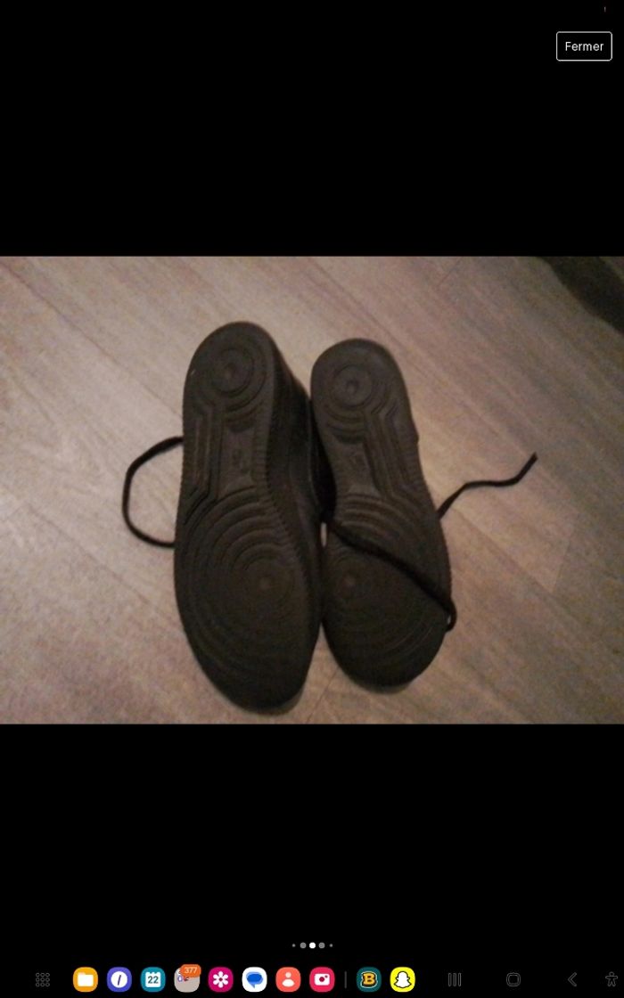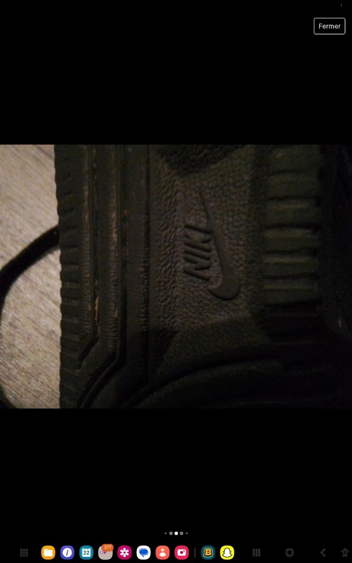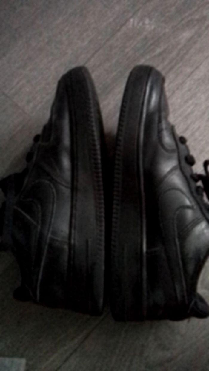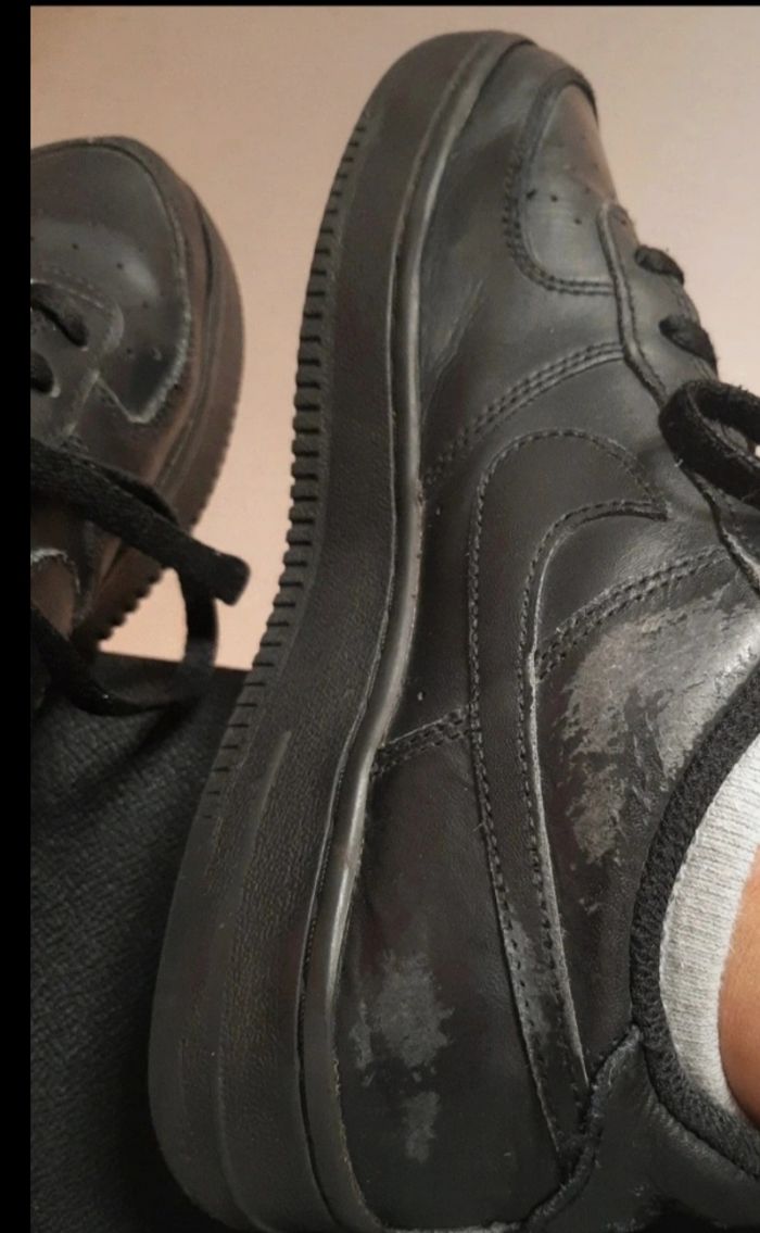Bonjour, je vend mes air force one noir ce sont des vrais ( voir 2eme photos )Sur la 4eme photos j’avais pris la photos dans un hôpital c’est pour sa que le défaut ce voit à se point la mais quand vous marcher sa ne se voit pas. Très bonne état ! :) Si vous avez des questions n’hésiter pas je répond rapidement ✨️😁