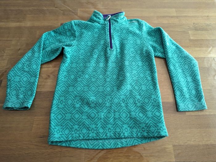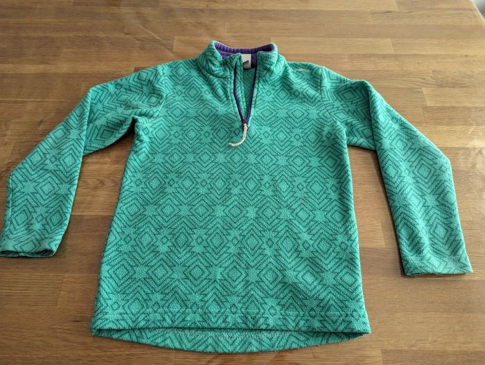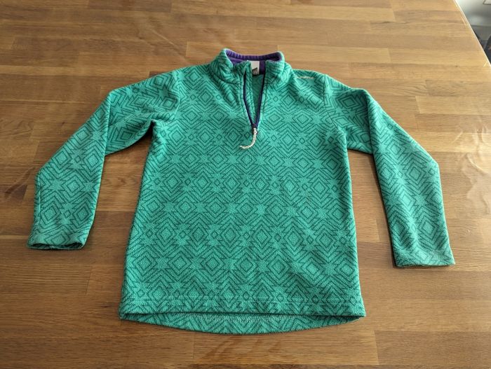 Pull polaire fille 6 ans Quechua Etat correct, plusieurs tâches aux manches, vert, taille grand