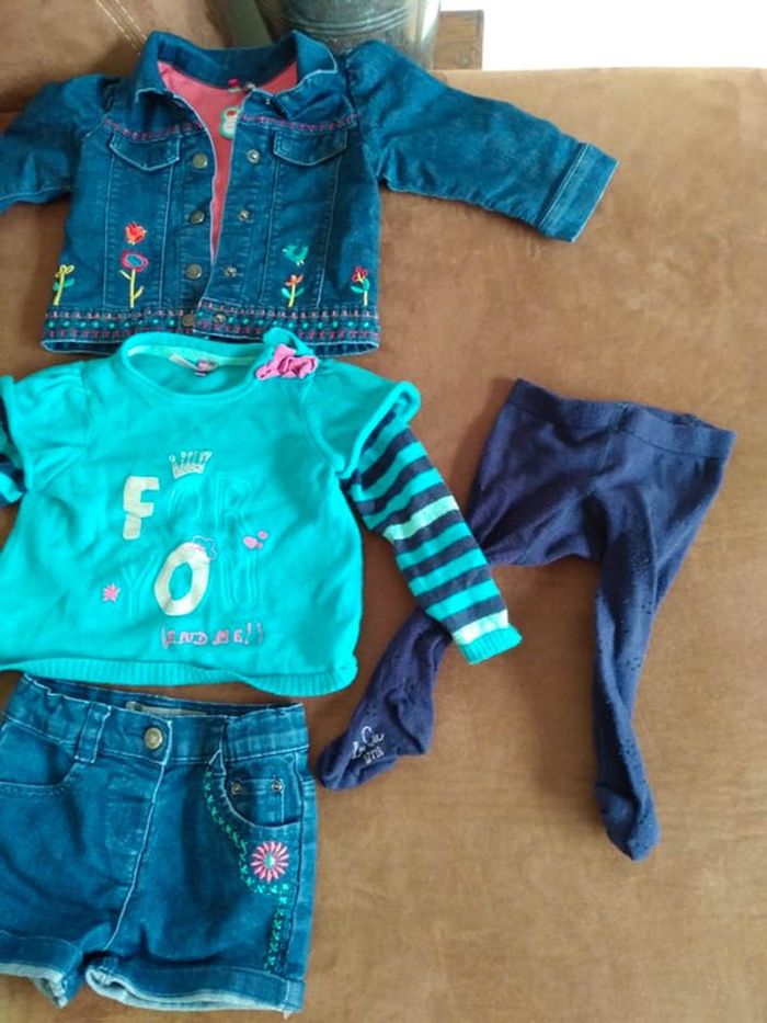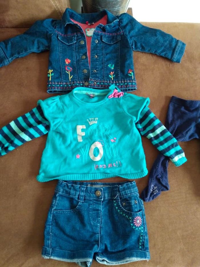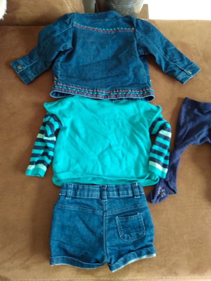 Ensemble la compagnie des petits, collants 17.18 tenue portée notamment pull, short et collant, la veste n'a pas été portée car ne correspond pas à la saison pour ma fille #didi_50fille9mois