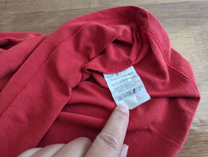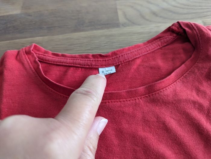 T-shirt fille 6 ans Bon état, rouge, 100% coton J'ai un doute sur une tâche sur le devant, voir avant dernière photo