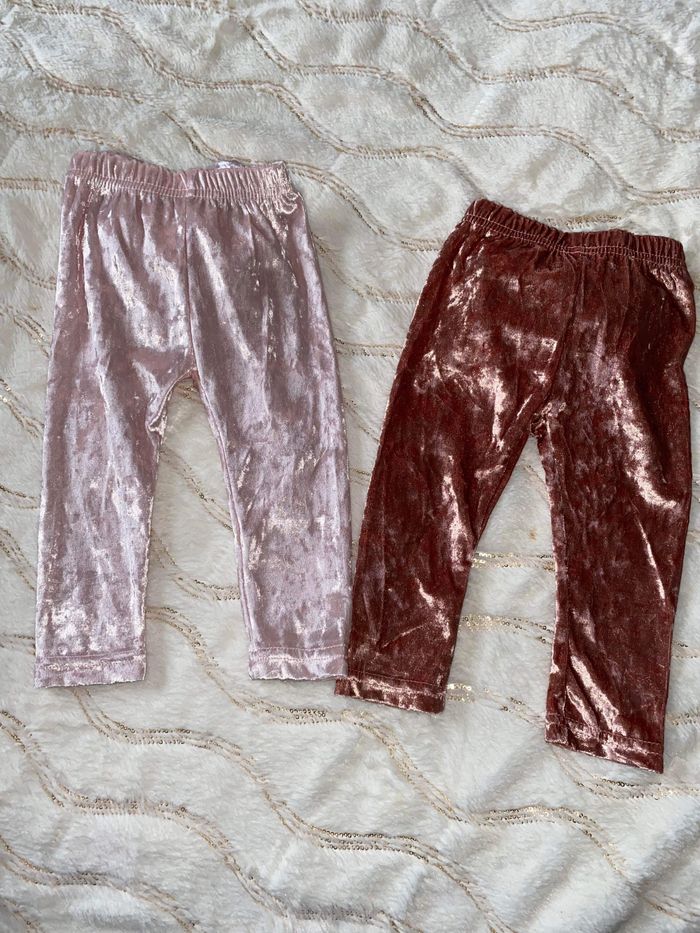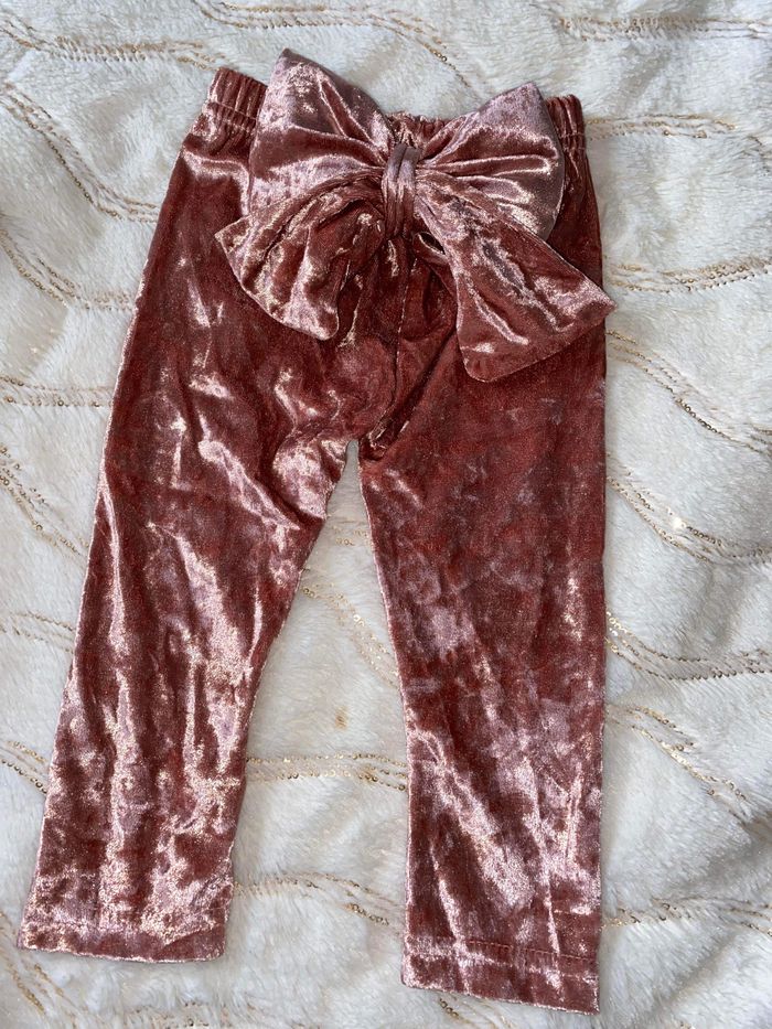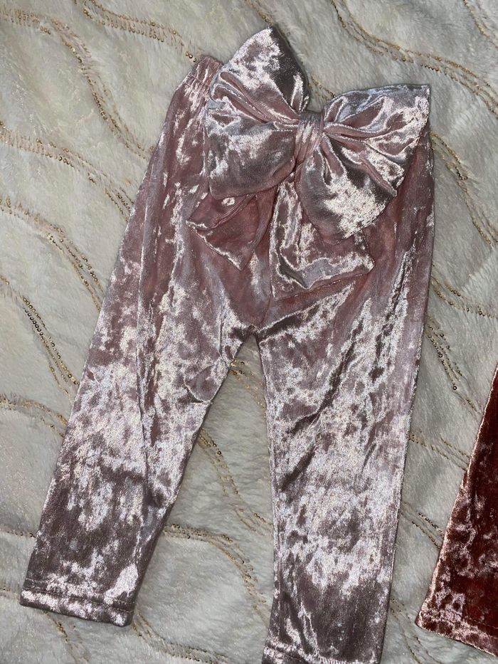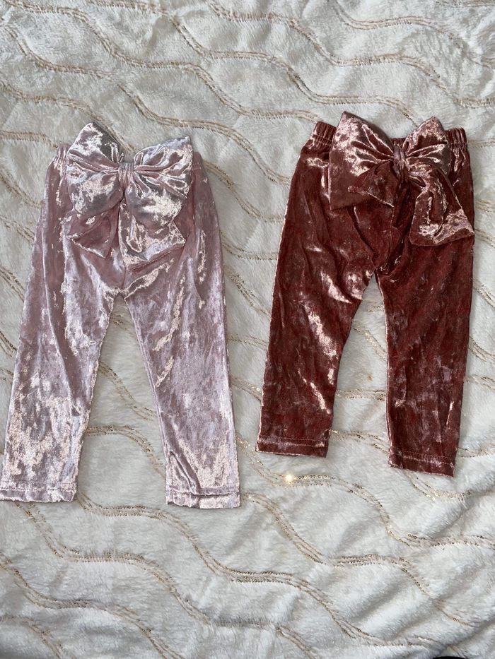 Lots de deux legging en velours avec nœud papillon derrière - photo numéro 2