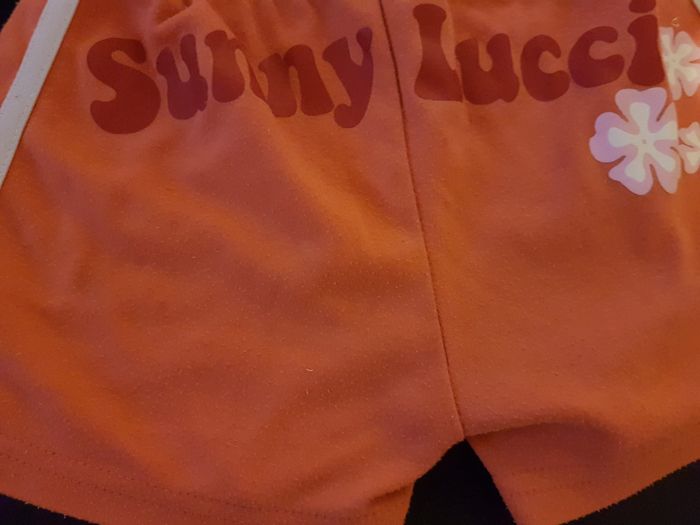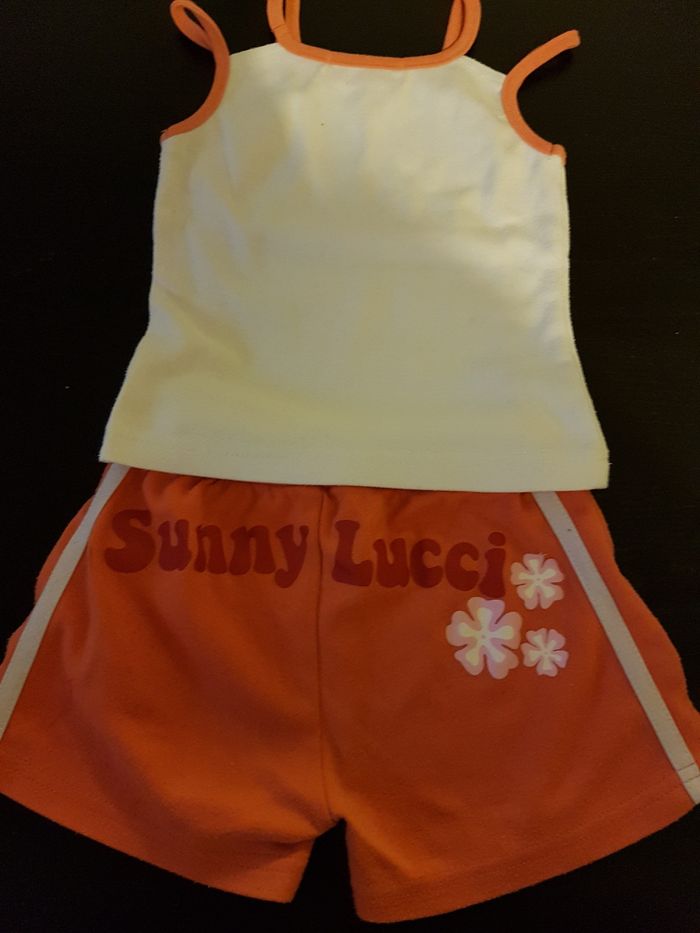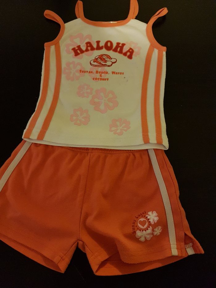 Pyjama short pour enfant 26 mois, en bon état, couleur blanc et orange, marque kiss melody.