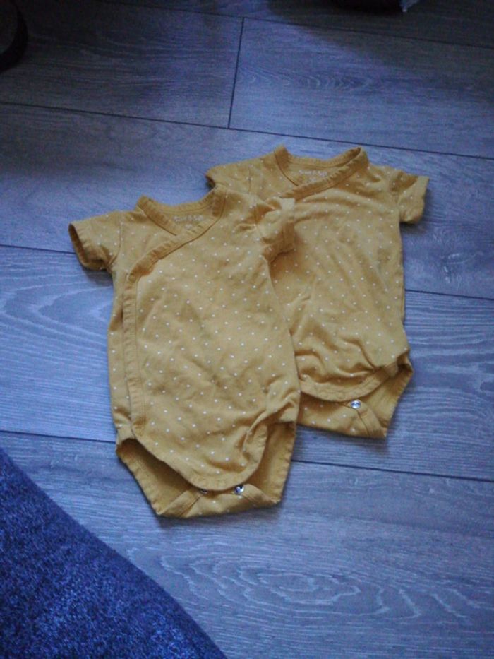 Lot de 2 bodies jaune moutardes à petits pois blancs. Mis 2 fois chacun