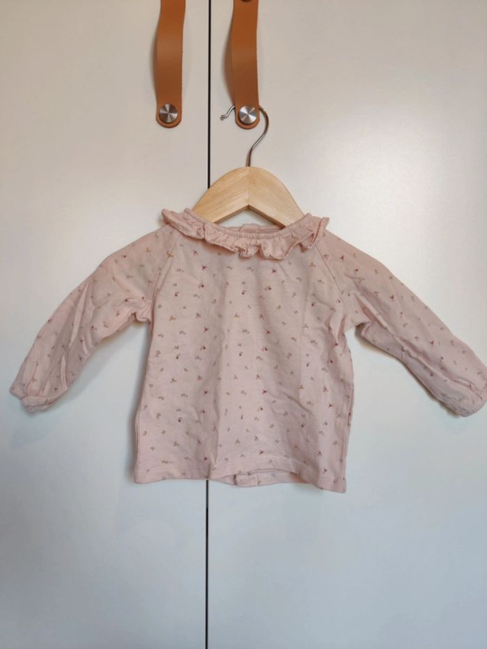 T-shirt manches longues rose fleuri Kiabi 6 mois Très bon état #elina_6mois