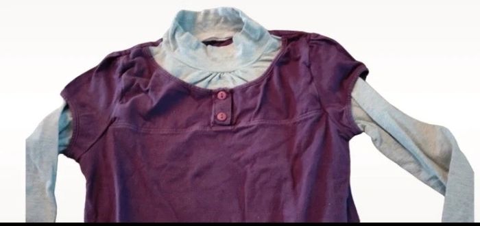 Tunique manches longues Mini Col roulé Mauve, col et manches grises Lacet au niveau des hanches pour ceintrer la tunique Taille notée : 126cm Marque : 3suisses Réduction sur les lots activée #fille8ans_laurence8777