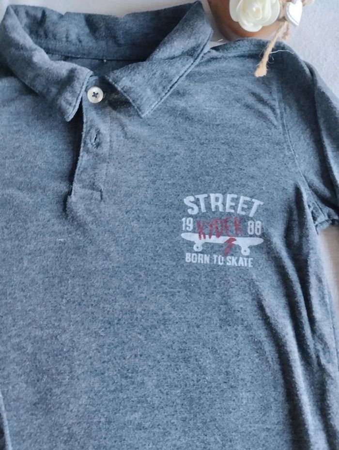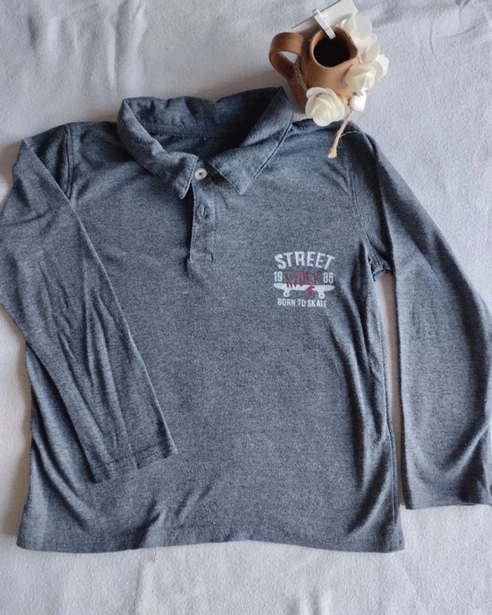 Polo léger à manches longues Petit motif skate 2 boutons Bien porté mais encore en très bon état Mesures sur les dernières photos Taille notée : 4-5ans mais plus pour du 4ans Marque : Carrefour Réduction sur les lots activée #4ans_laurence8777