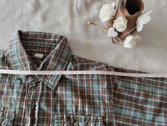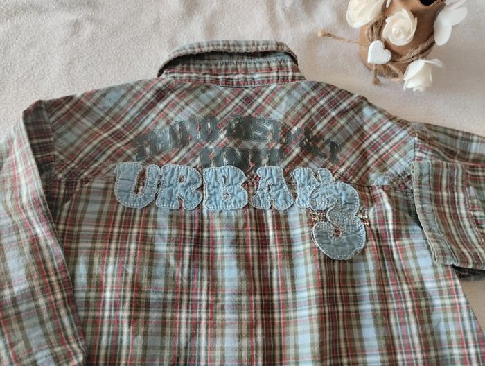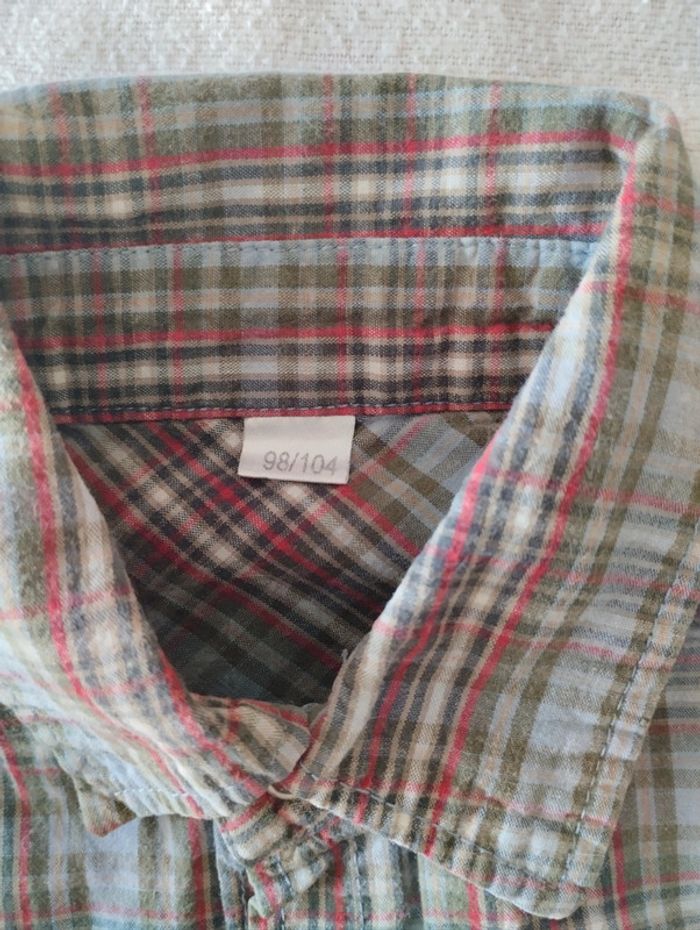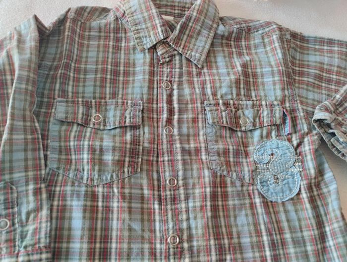 Belle chemise manches longues 2 petites pochettes sur le torse Motif en relief dans le dos ainsi que sous la pochette gauche Fermeture par pressions Mesures sur les dernières photos Taille notée : 98/104cm Marque : non notée mais Zeeman Réduction sur les lots activée #4ans_laurence8777