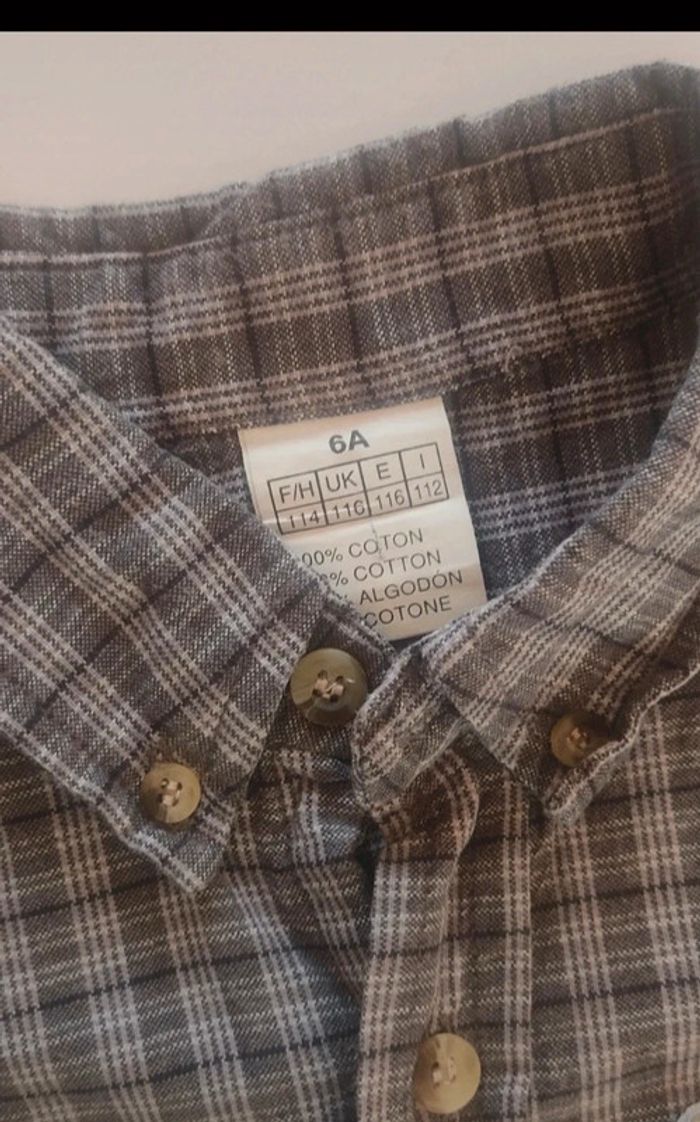 chemise a carreaux gris et manches longues Petite poche sur la gauche Taille notée : 6ans/114cm Marque : aucune Réductions activées sur les lots #6ans_laurence8777