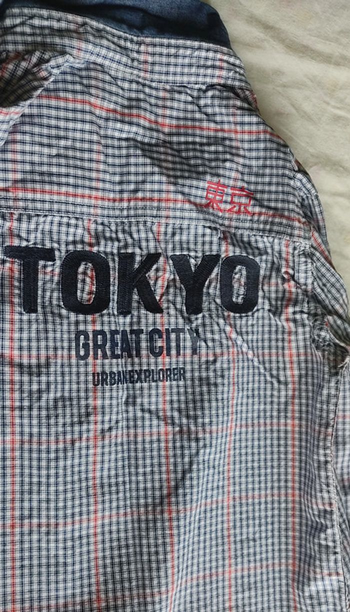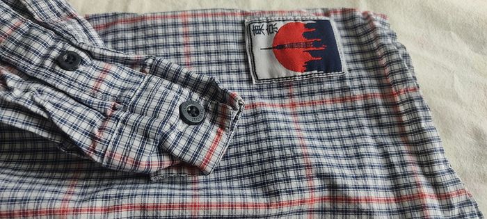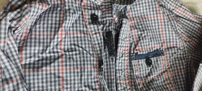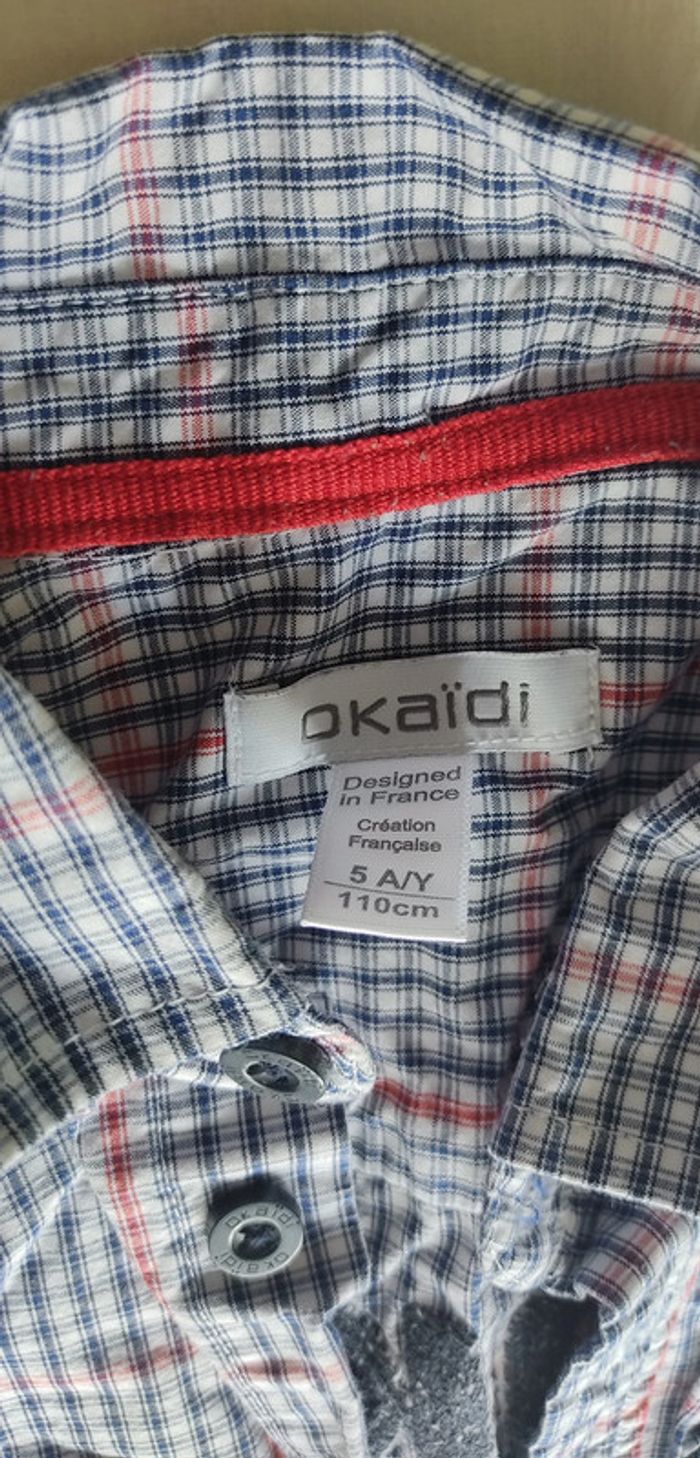 Chemise a carreaux Okaïdi Motifs et écritures dans le dos Carreaux bleus et rouges Porté 1 fois taille notée : 5ans / 110cm Marque: OKAIDI #5ans_laurence8777