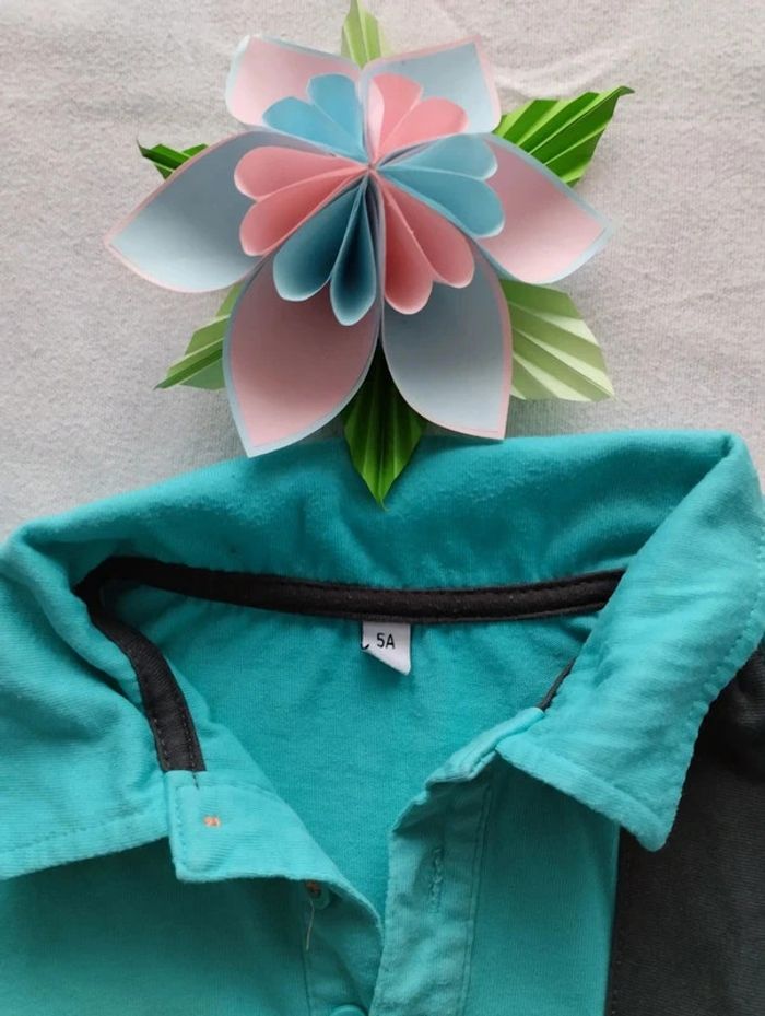 Beau polo à manches longues vert Je ne sais plus la marque. L' étiquette a été découpée Taille notée : 5ans Réduction sur les lots activée #5ans_laurence8777