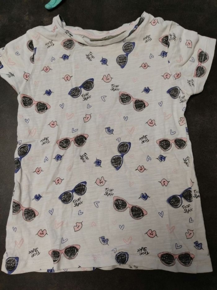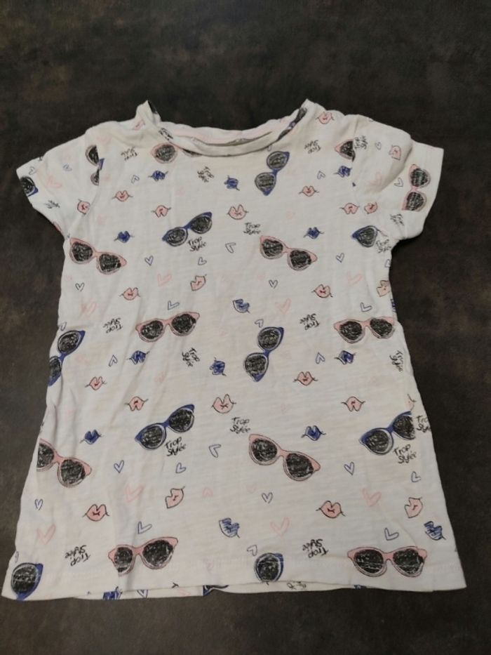 t-shirt blanc motif lunettes. Très bon état= 2€