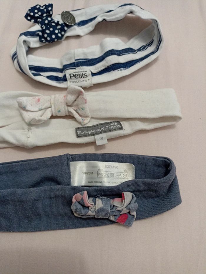 Lot de 3 bandeaux fille. Le blanc a une petite tâche a l'arrière. #3ansfille_katarzina29 #24moisfille_katarzina29 #18moisfille_katarzina29 #12moisfille_katarzina29 #9moisfille_katarzina29 #6moisfille_katarzina29