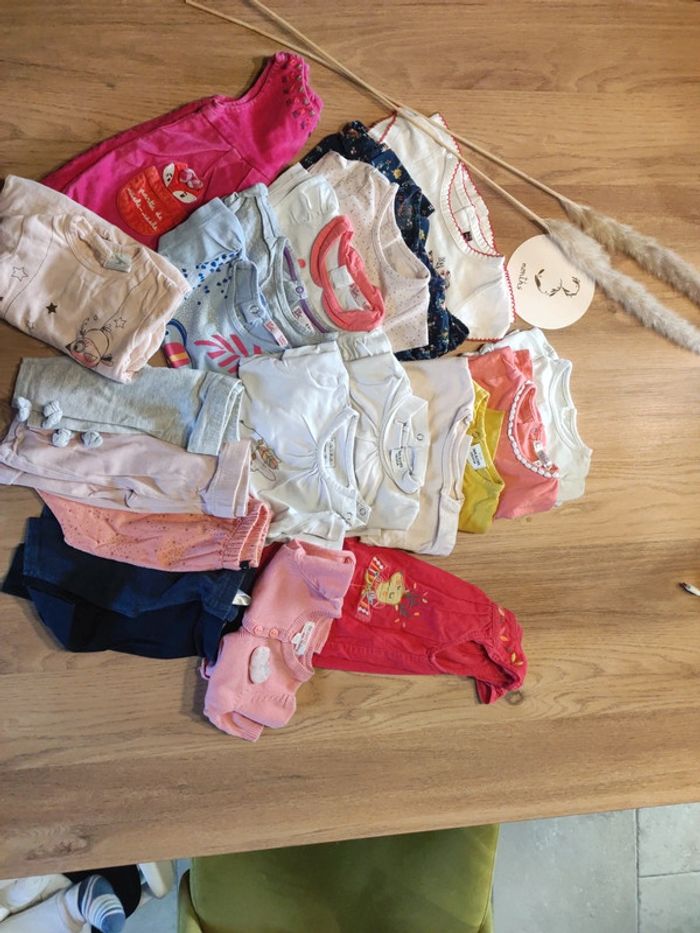 Lot 3 mois fille composé de 21 articles : 6 tee shirts manches courtes 6 tee shirts manches longues 1 gilet 1 pyjama léger 4 leggings 1 sarouel 1 salopette 1 robe Marques : obaibi, Vertbaudet, dpam, tape à l'oeil, sergent major, kiabi etc.
