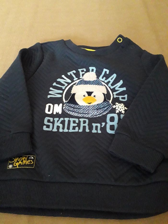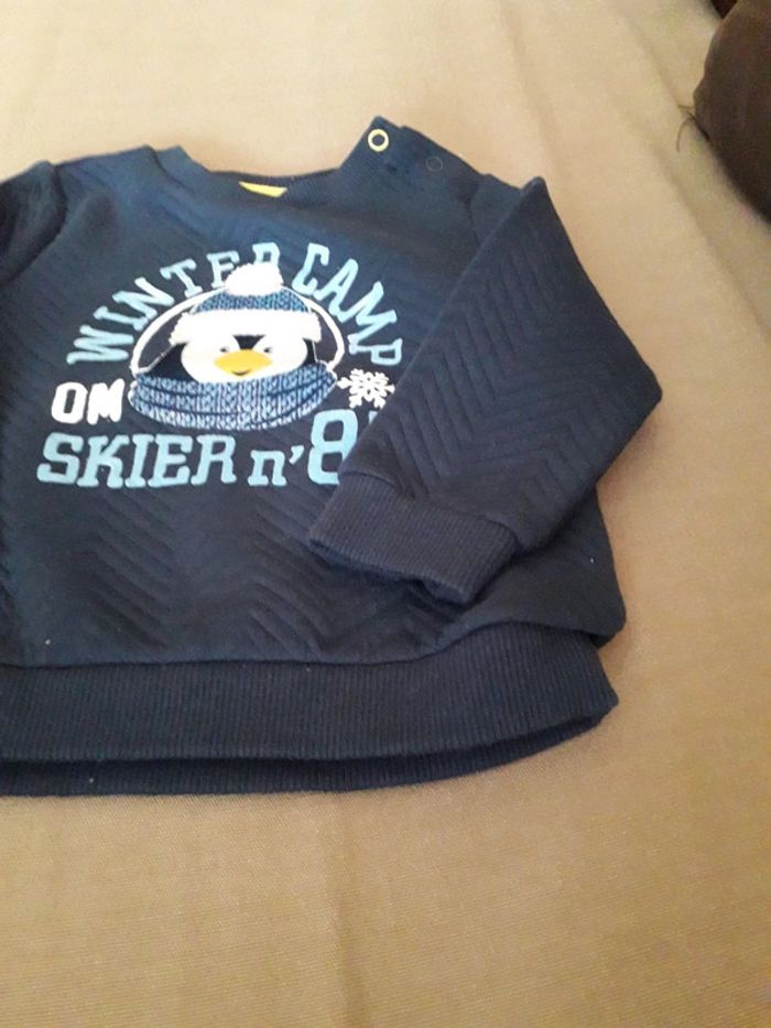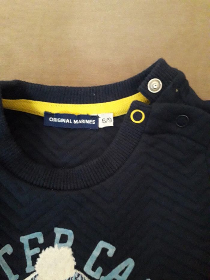 Sweat Original Marines, garçon, taille 6/9mois, en très bon état, fermeture pression. Bleu foncé