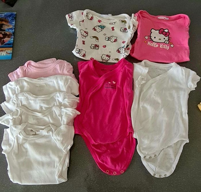 Lots 9 bodies 2 avec mini taches presque invisible mis en photo les autres en très très bonne état 6mois Manche courte