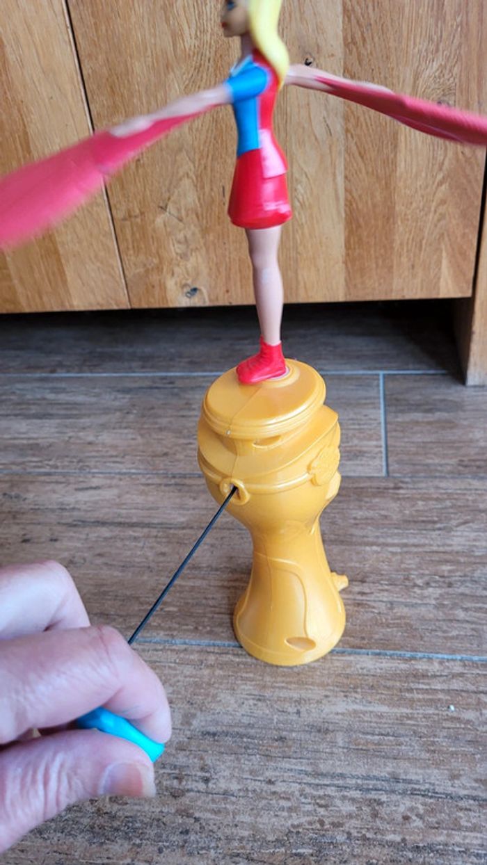 Les supers pouvoirs de Supergirl lui permettent de voler. Grâce à cet accessoire à propulsion mécanique, la figurine de 15 cm vêtue de sa tenue emblématique peut réellement s'élancer en virevoltant par simple étirement de l'anneau. Accessoire de propulsion inclut. #mathildasandrajouets #jouetvolant #supergirl #supergirldc