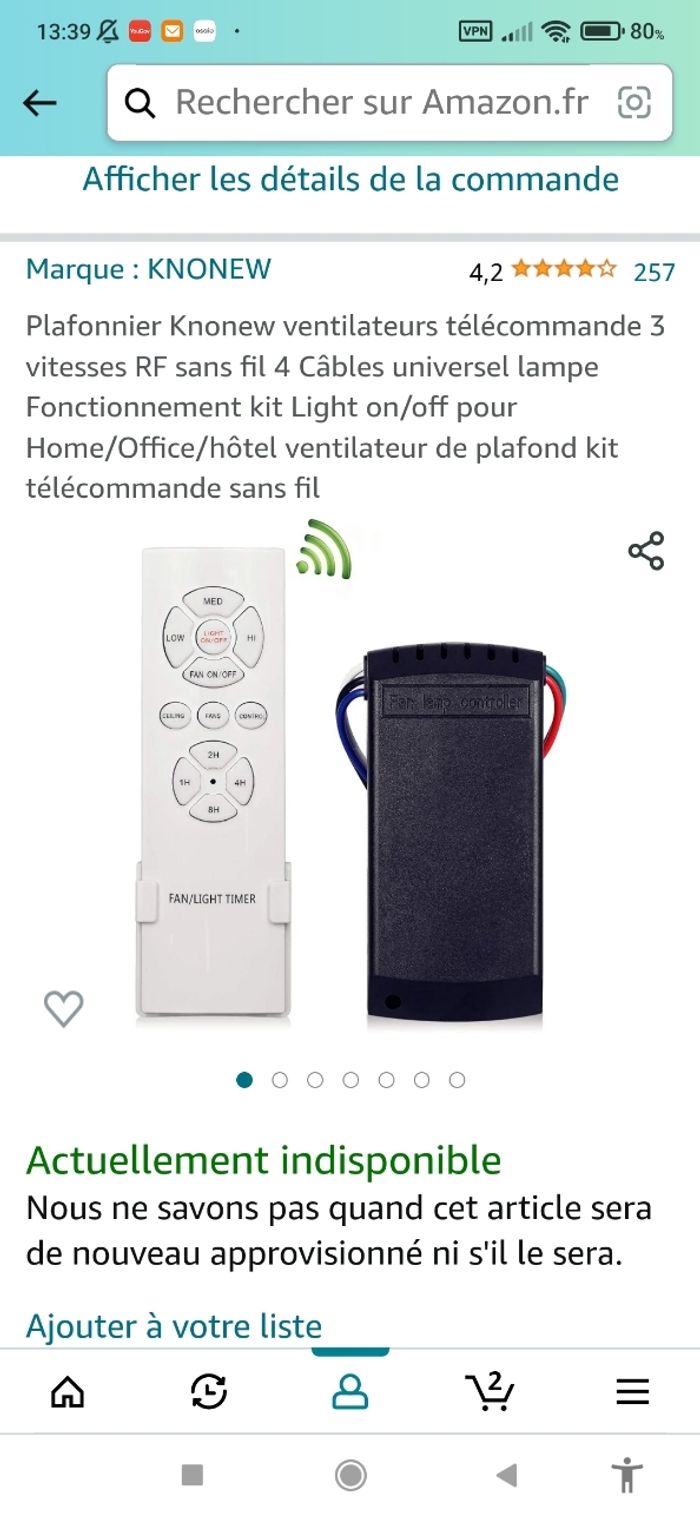 Vend Télécommande pour Ventilateur de Plafond, télécommande sans Fil Intelligente pour Ventilateur de Plafond Universel. Jamais utilisé neuf.