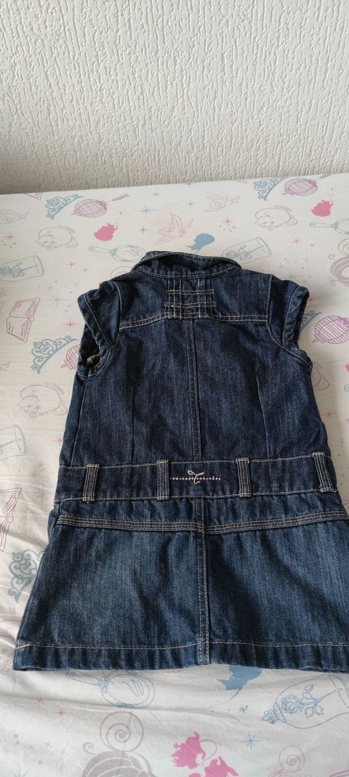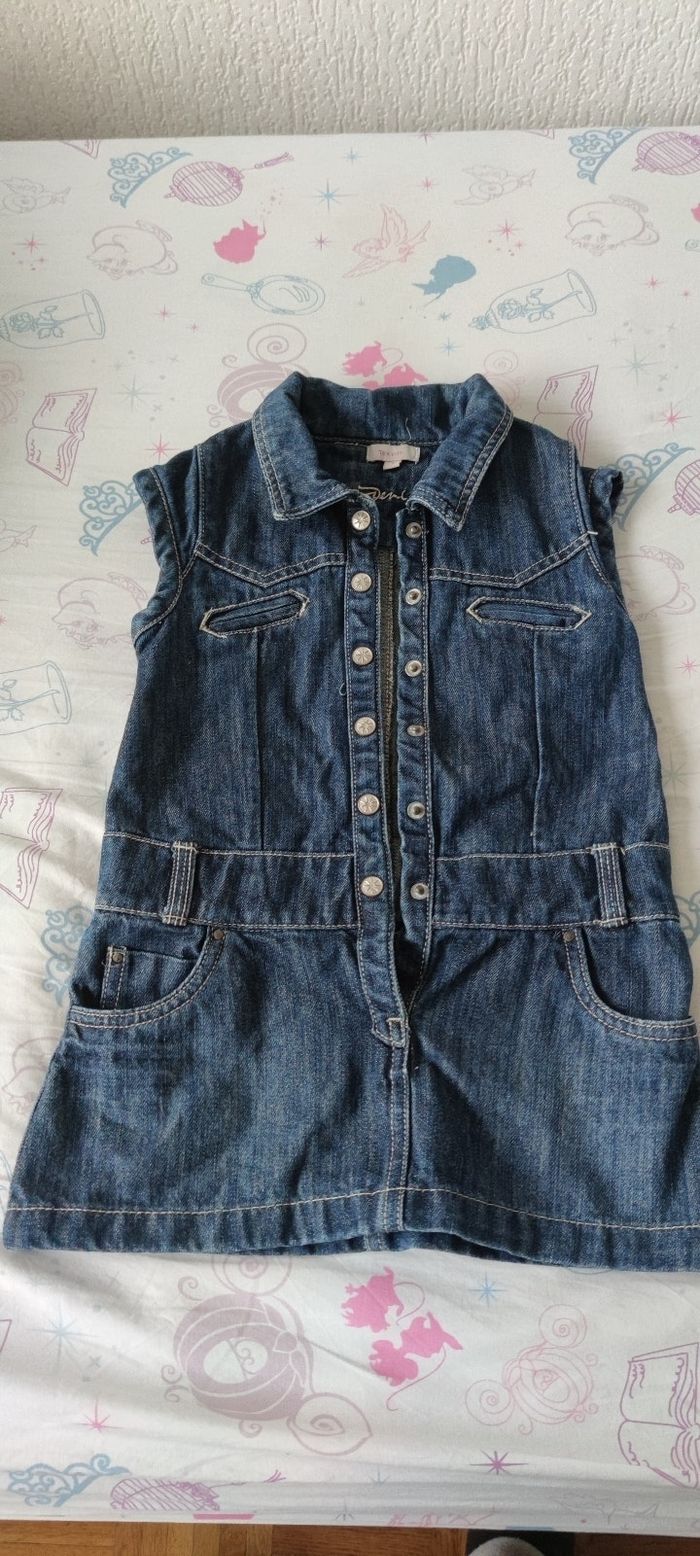 Jolie robe en jean, 3 ans, poches a l'avant. Fermeture par pressions. En très bon état.