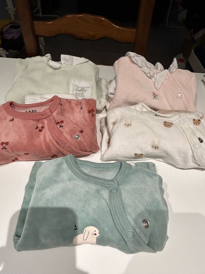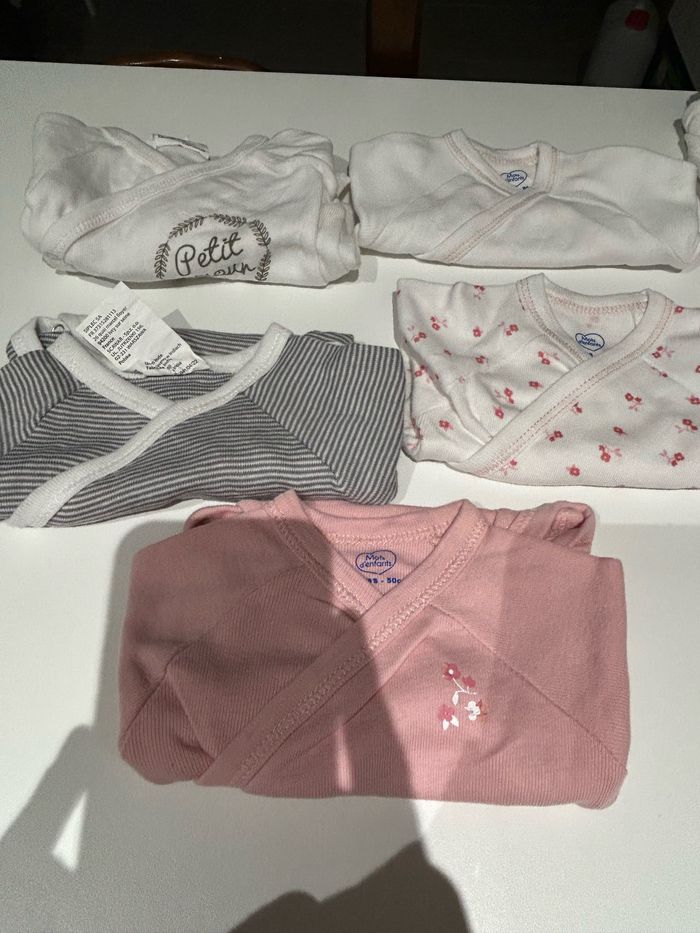 Bonjour, Je vend pyjama et bodies naissance pour filles Marque petit bateau KIABI et mots d’enfants