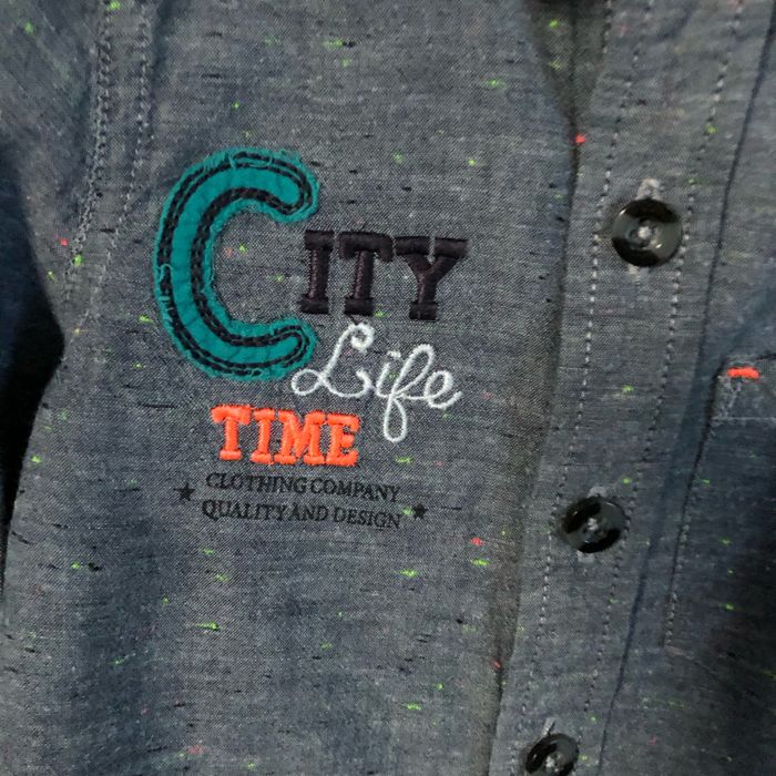 Chemise en jeans léger chiné fluo Écritures fluo Manches longues Taille 3 ans 98 cm Orchestra