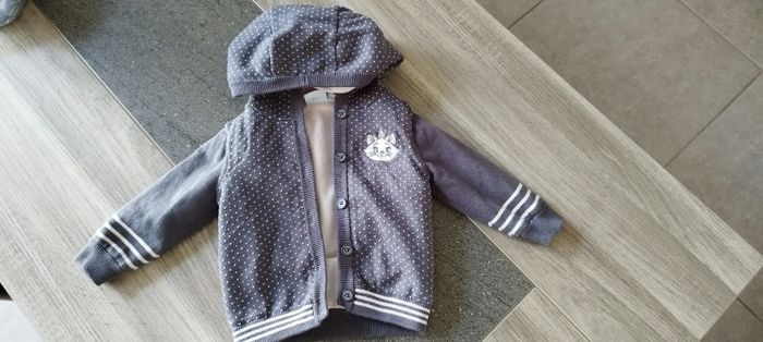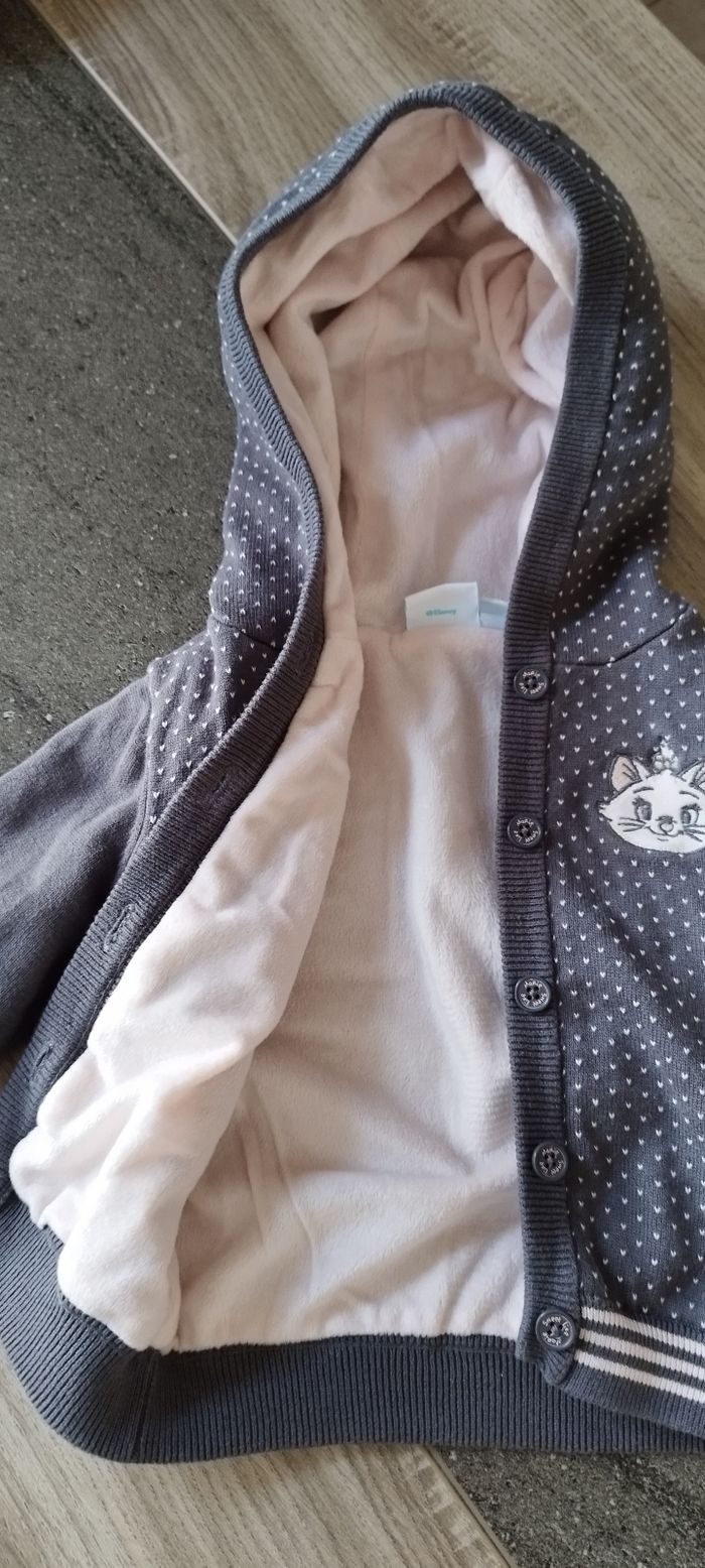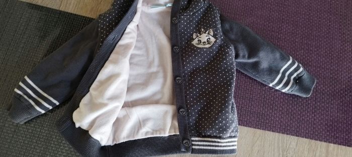 Gilet chaud, intérieur polaire. Motif petit pois et Marie sur le devant.
