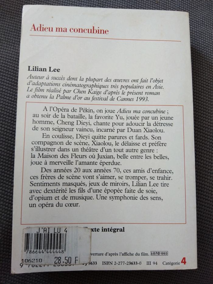 Livre de Lilian Lee "adieu ma concubine" #a2lyneeelivres #livre #adieumaconcubine #lilianlee #roman #livrecinéma