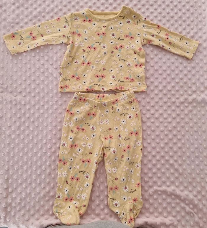 Pyjamas 2 pièces , jaune fleurie taille 9M, 74cm