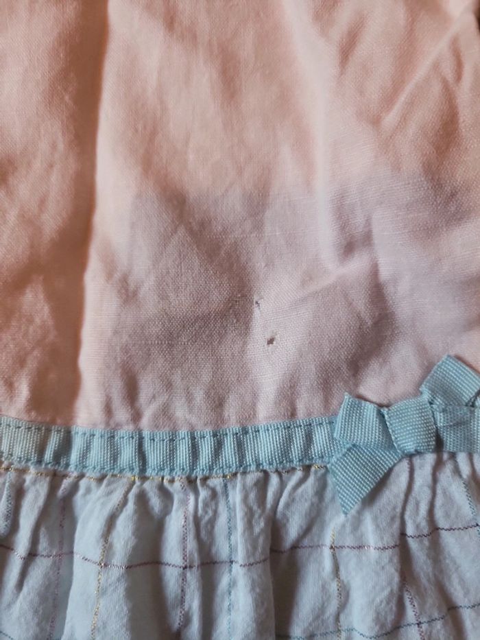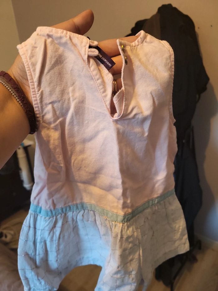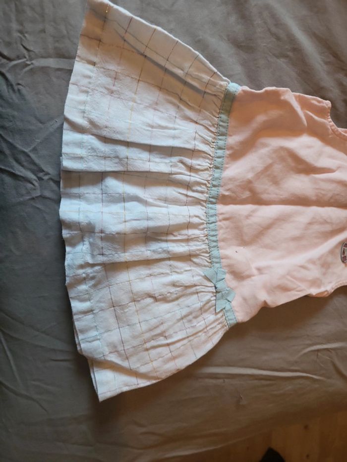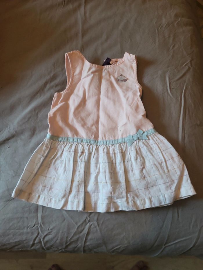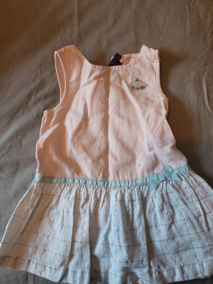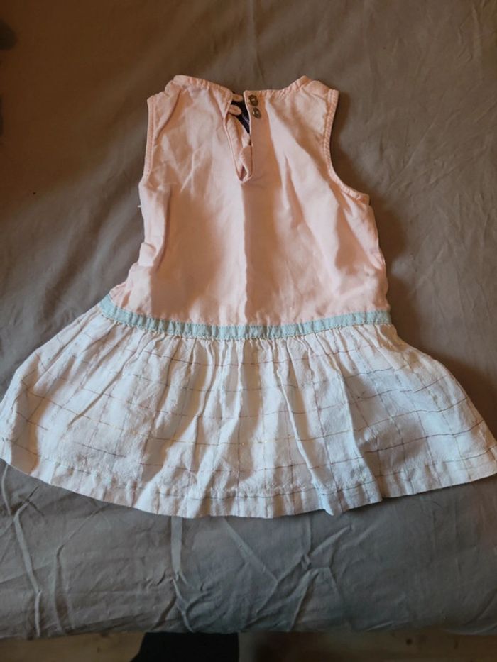 Robe en très bon état mais il y a un petit trou sur l'avant et une petite tâchedans le dos (en haut a gauche), pas très visible . Voir photos #fille6moisckk91