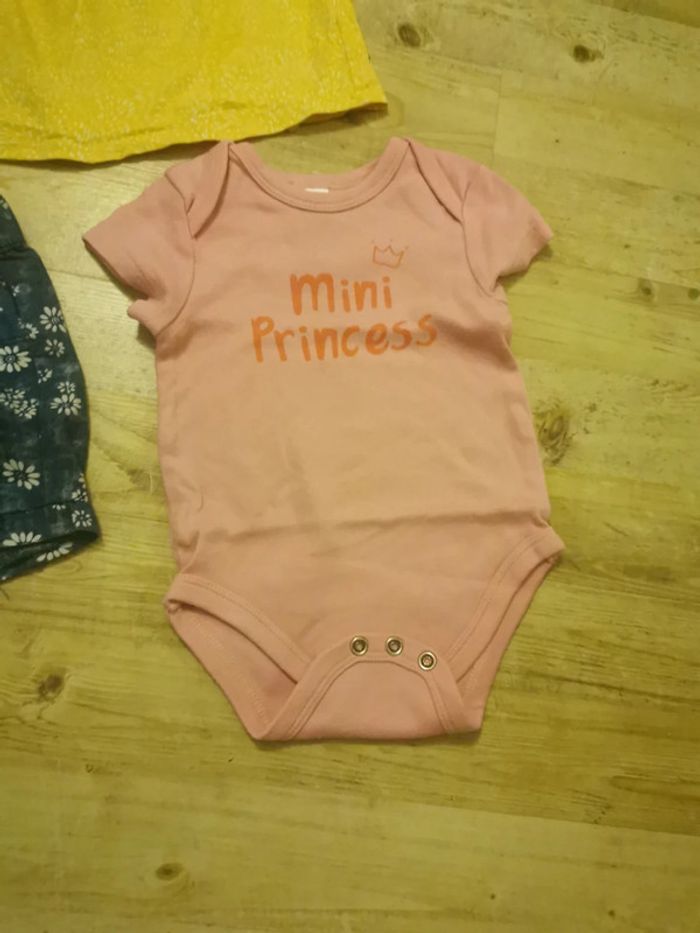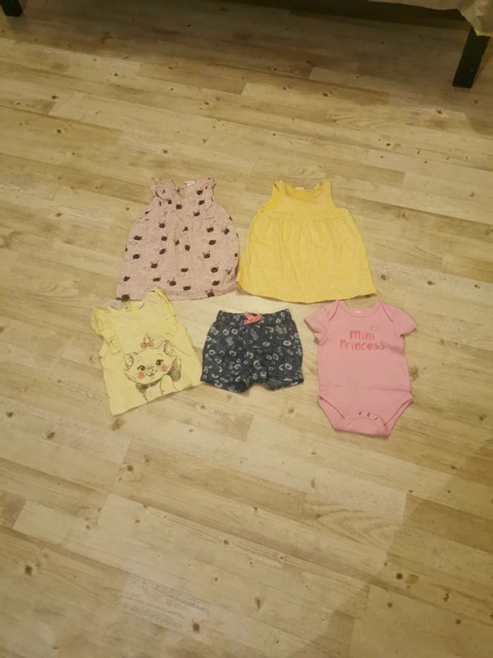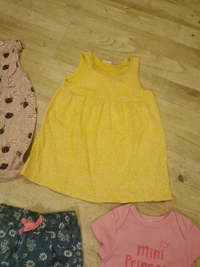 Lot composé de: 2 robes H&m taille 6-9 mois/ 74 cm 1 t-shirt Disney Marie 1 bodie 1 short (knot so bad) #fille6moisckk91