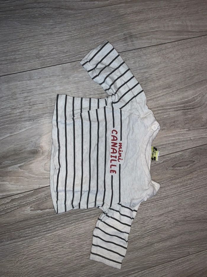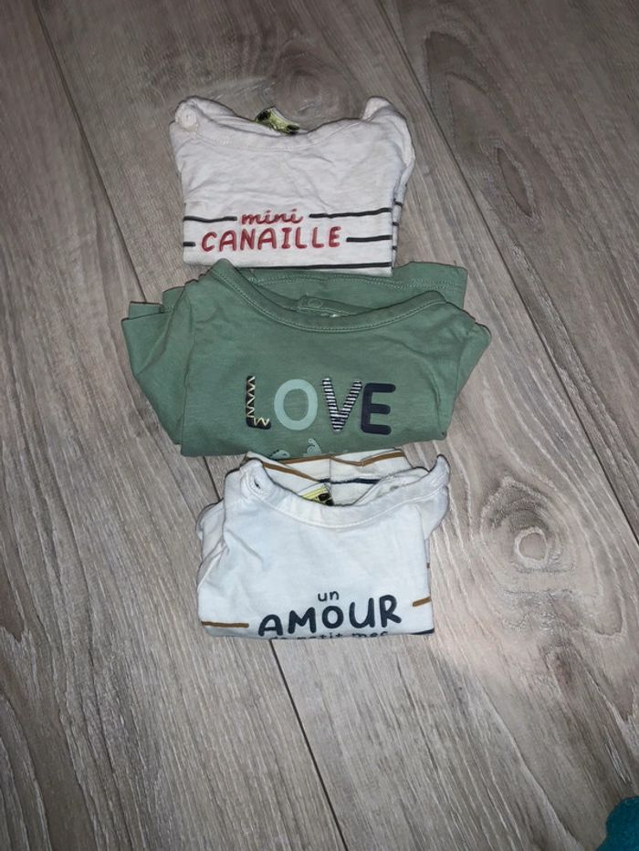 Lot de 3 t-shirts manche longue garçon 1 mois 54cm porté 1 à 2x maximum Marque : Tape à l’œil